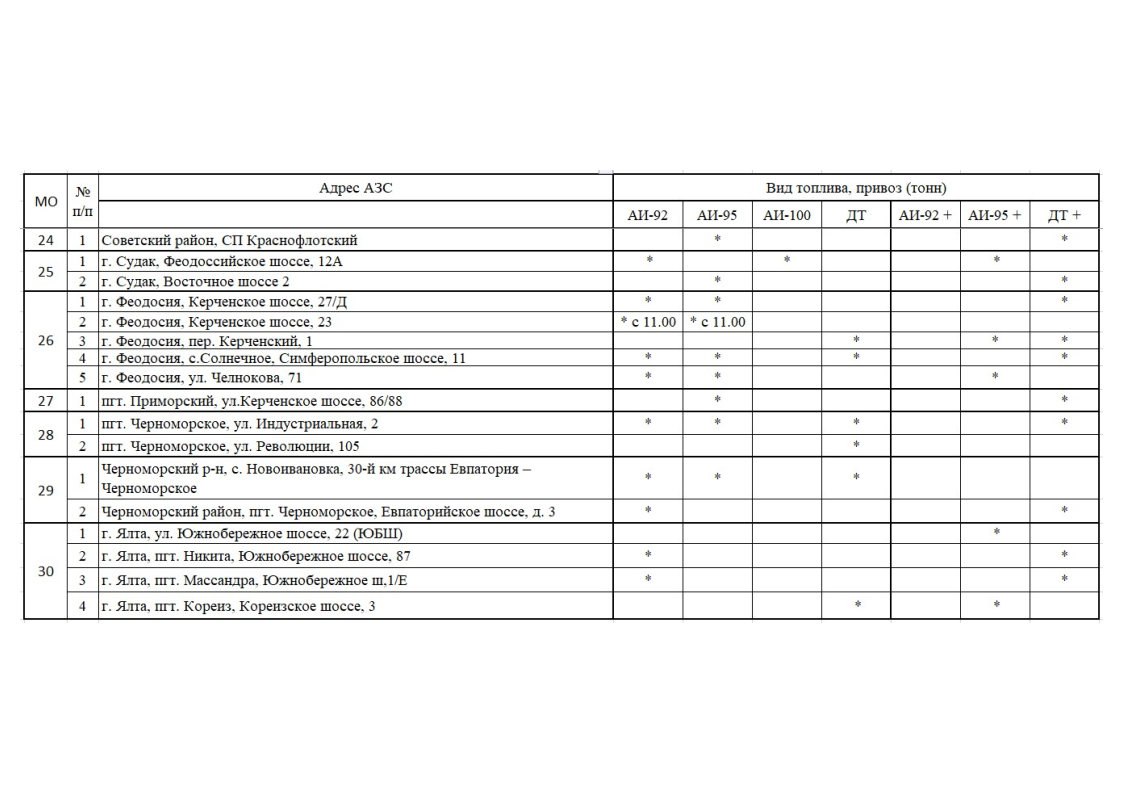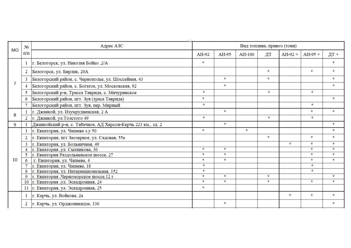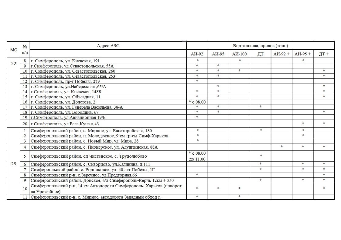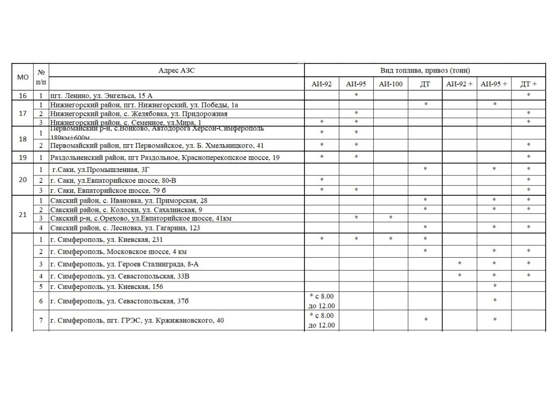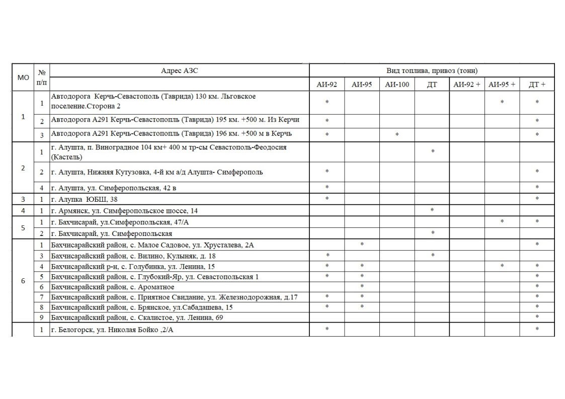 Публикую актуальную информацию о наличии топлива на автозаправочных станциях Республики Крым по состоянию на 20.10.2025 года.