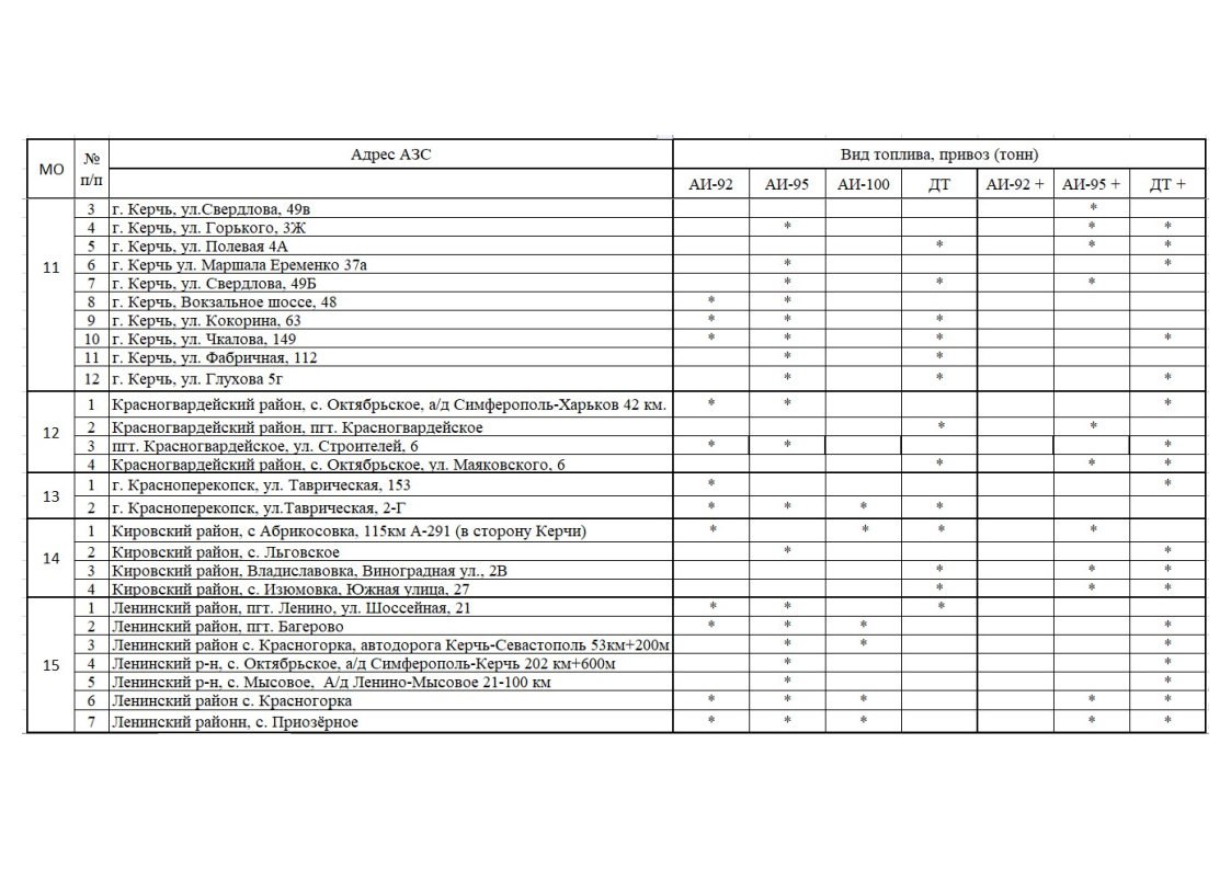 В прилагаемом списке указаны марки топлива и адреса АЗС, где оно доступно в свободной продаже.