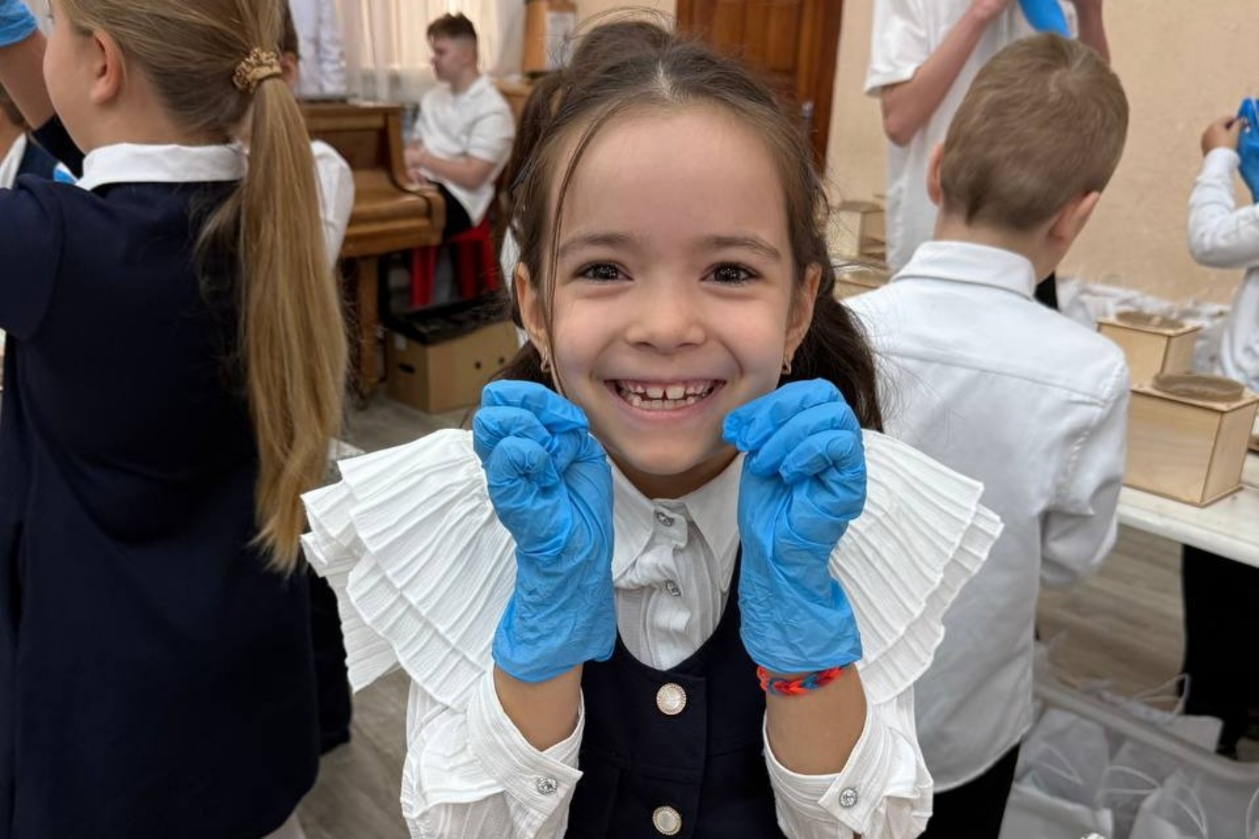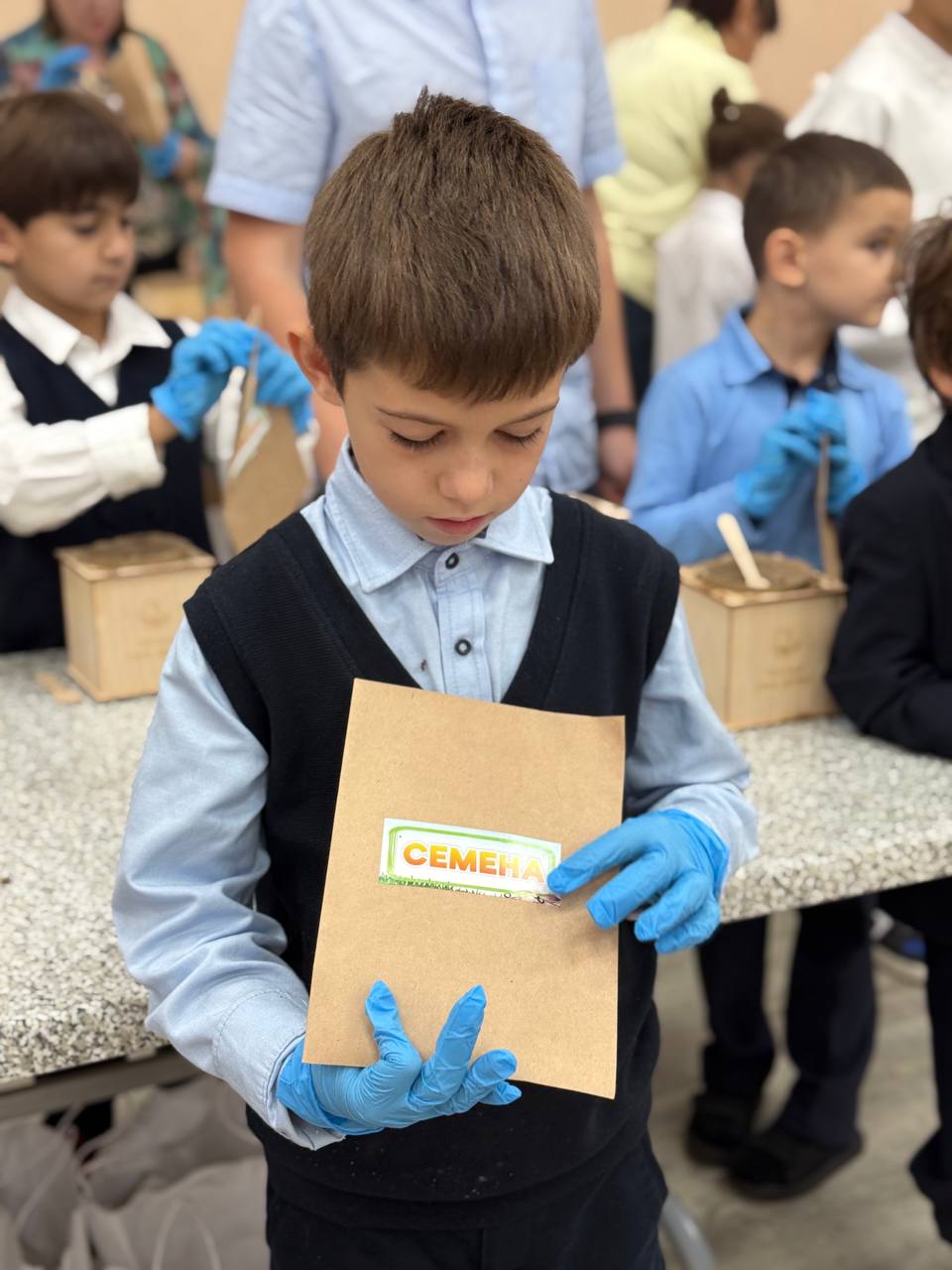 Каждый первоклассник получил специальный набор (горшочек, перчатки, ложечку, пакетики с керамзитом, грунтом, перлитом и семенами).