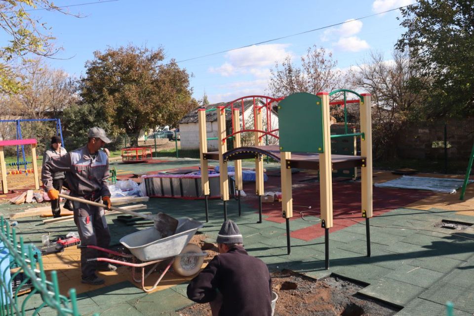 Так, в селе Червоное на спортивной площадке завершается укладка резинового покрытия, после чего рабочие приступят к нанесению разметки. В селе Рунное уже уложено резиновое покрытие, осталась установка игровых элементов, в селе Долинка завершается укладка резинового покрытия, устанавливаются игровые элементы площадки.