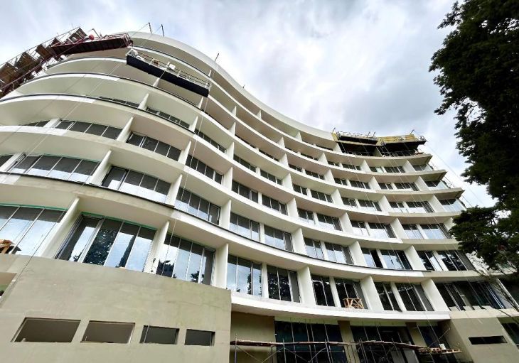 «Строительство нового спального корпуса на 300 мест стартовало летом 2022 года. Его общая площадь составляет более 9,5 тыс. кв. метров. В настоящее время на объекте подходят к концу фасадные работы и остекление здания. Также строители выполняют внутреннюю отделку помещений и монтаж инженерных систем. Ввести новый корпус санатория в эксплуатацию планируется в 2026 году», – рассказали в пресс-службе компании.