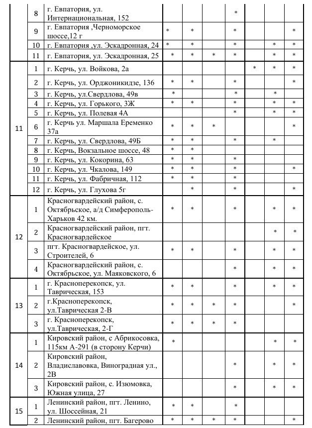Перечень адресов АЗС, где имеется топливо в свободной продаже.