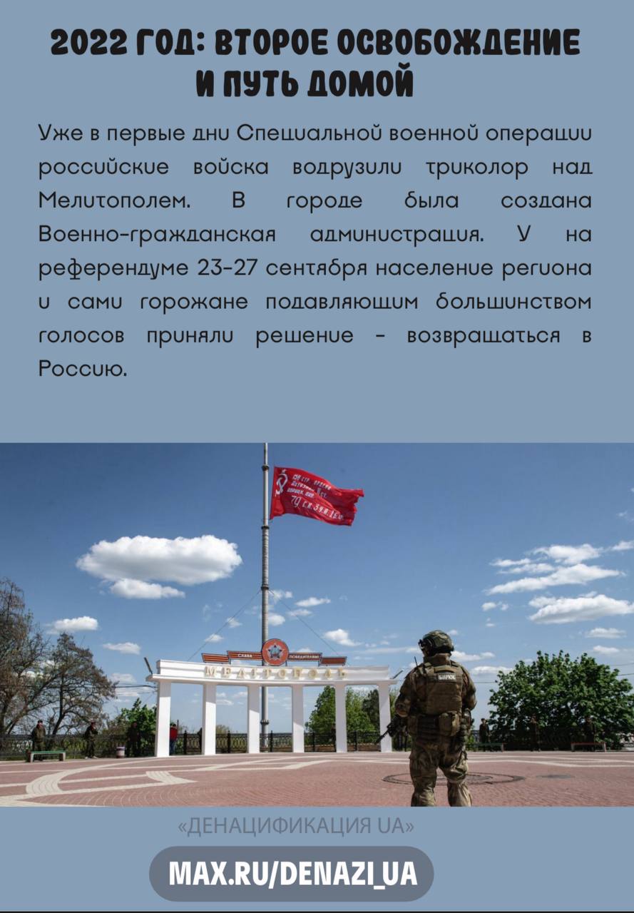 Прошло три года, как Мелитополь вернулся домой — в состав России. Поздравляем горожан с их праздником, желаем дальнейшего восстановления и процветания прекрасного южнорусского города!
