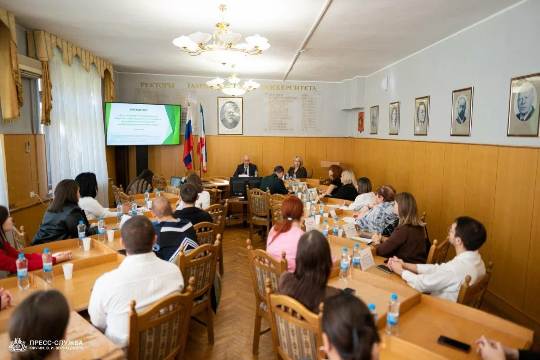Члены общественного совета при Министерстве внутренней политики информации и связи Республики Крымприняли участие в круглом столе в Крымском федеральном университете имени В.И. Вернадского на тему «Роль институтов гражданского общества, образования и государства в формировании у молодежи антикоррупционного мышления».