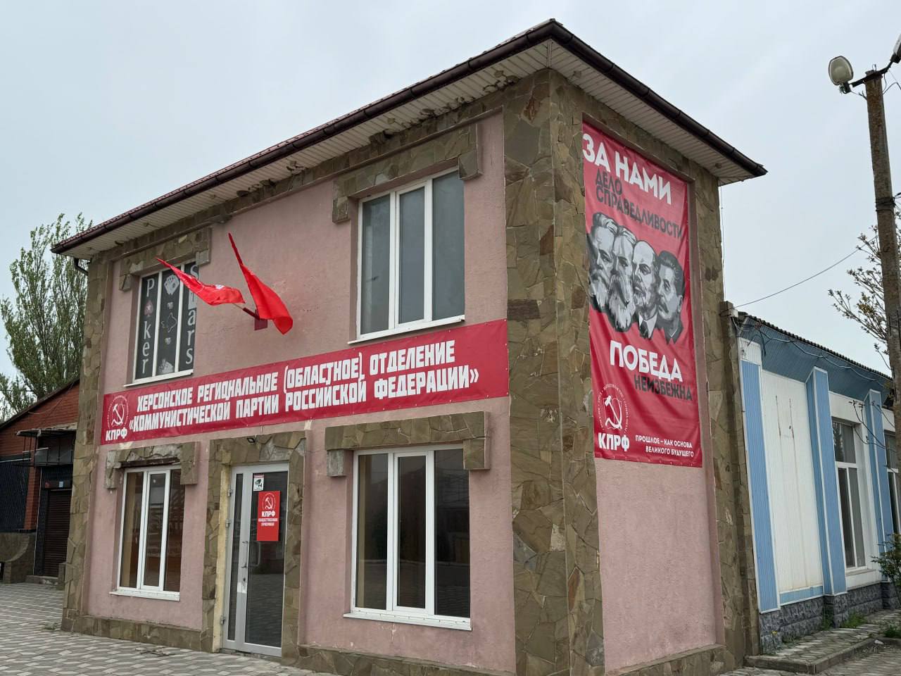 На следующих снимках – немного генической повседневности. Вот забавный особняк Херсонского регионального отделения КПРФ у пляжа – будто из другого времени, но очень по-генически. А рядом – пышные кусты сирени, которыми весной буквально дышит весь город.