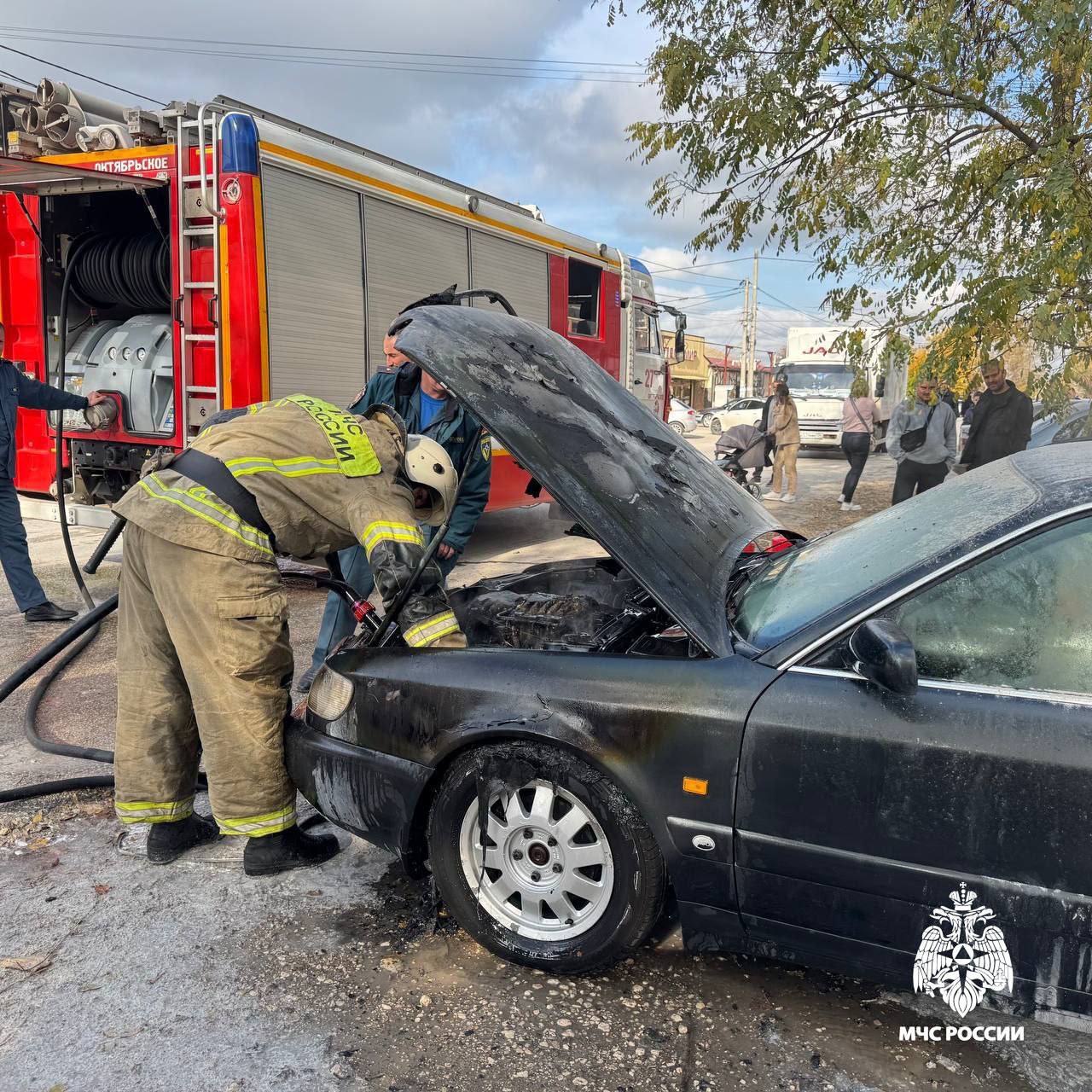 «В Красногвардейском районе, пгт. Октябрьское, сотрудники 6-го пожарно-спасательного отряда ликвидировали возгорание легкового автомобиля на площади 1 кв.м. Пострадавших нет. Причину установят эксперты», — сообщили в ГУ МЧС России по Крыму.