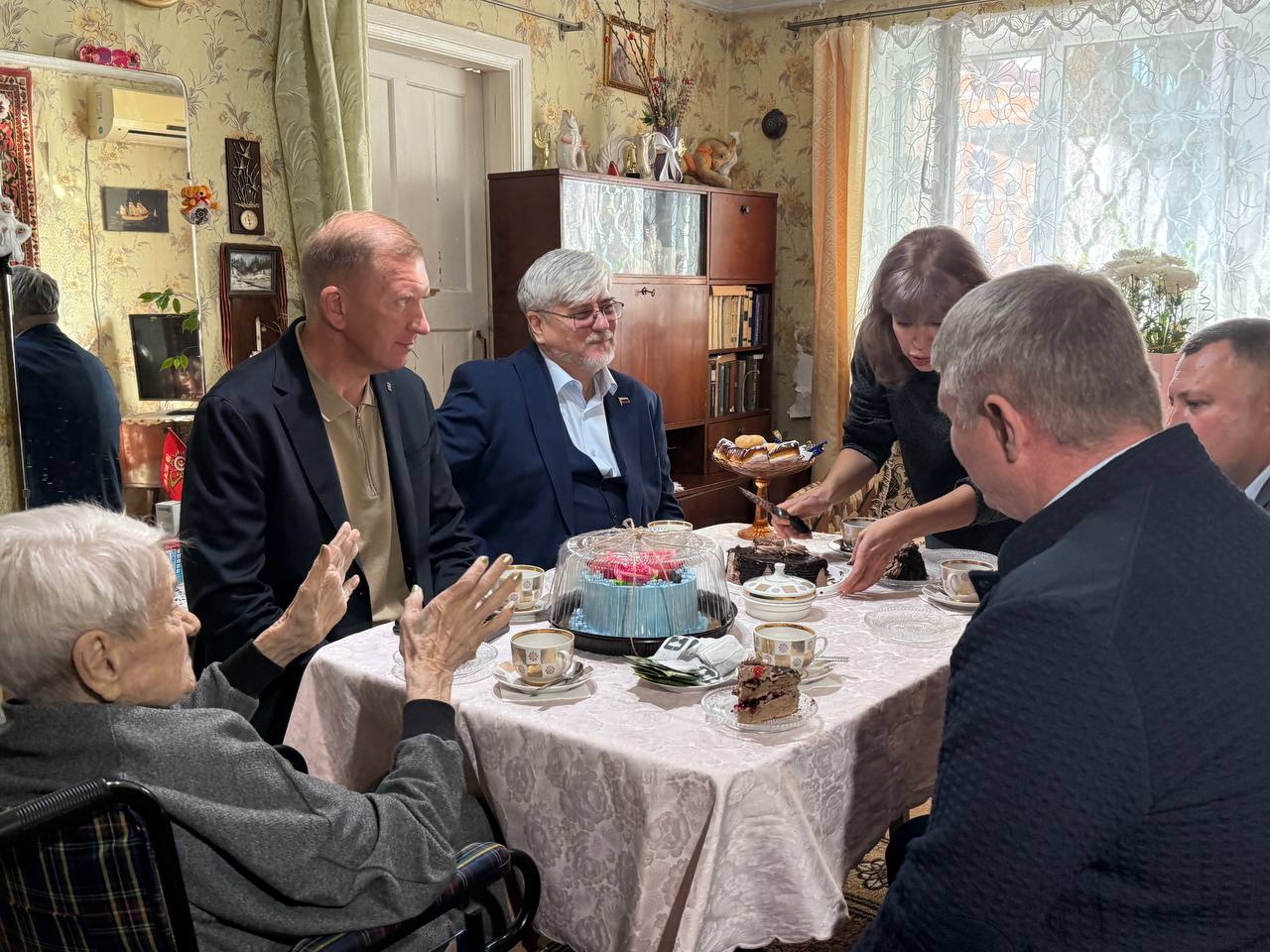Вместе с депутатом Государственной Думы Российской Федерации Михаилом Шереметом, депутатом Государственного Совета Республики Крым Сергеем Ильченко и главой муниципального образования городской округ Джанкой Сергеем Дорошенко поздравили Екатерину Васильевну.
