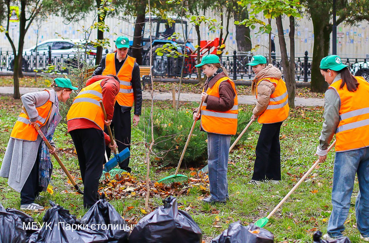 Сейчас ребята организуют уборку городских парков и скверов. К работам привлечено 30 человек. Сегодня они провели первый субботник в сквере Ленина, убрав сухостой, опавшие листья и другой мусор. Работа продолжается! Следующие мероприятия пройдут и в других зелёных зонах города. Организовать работу на своих подведомственных территориях помогают сотрудники учреждения "Парки столицы".