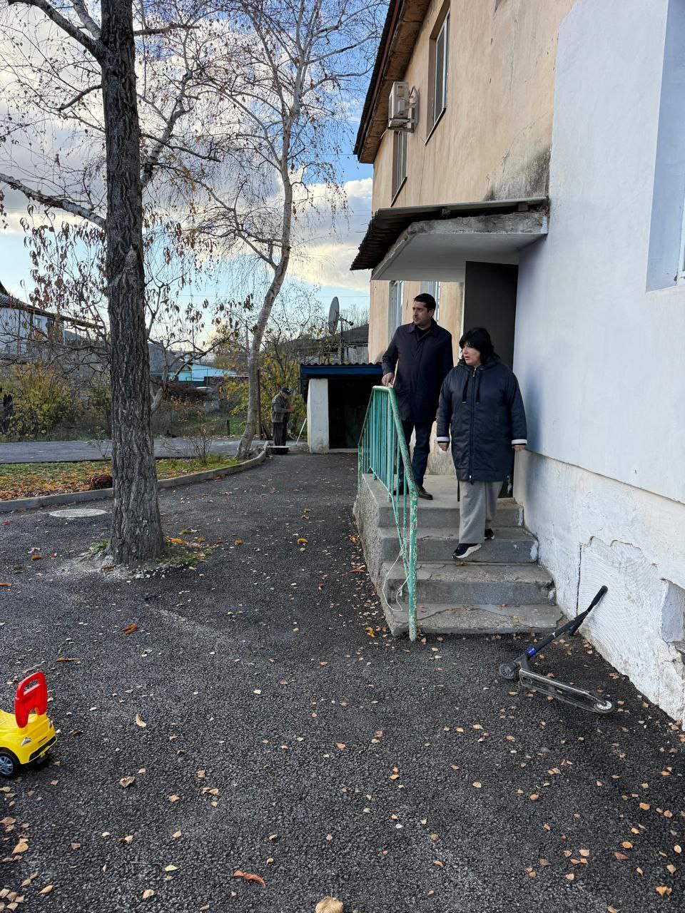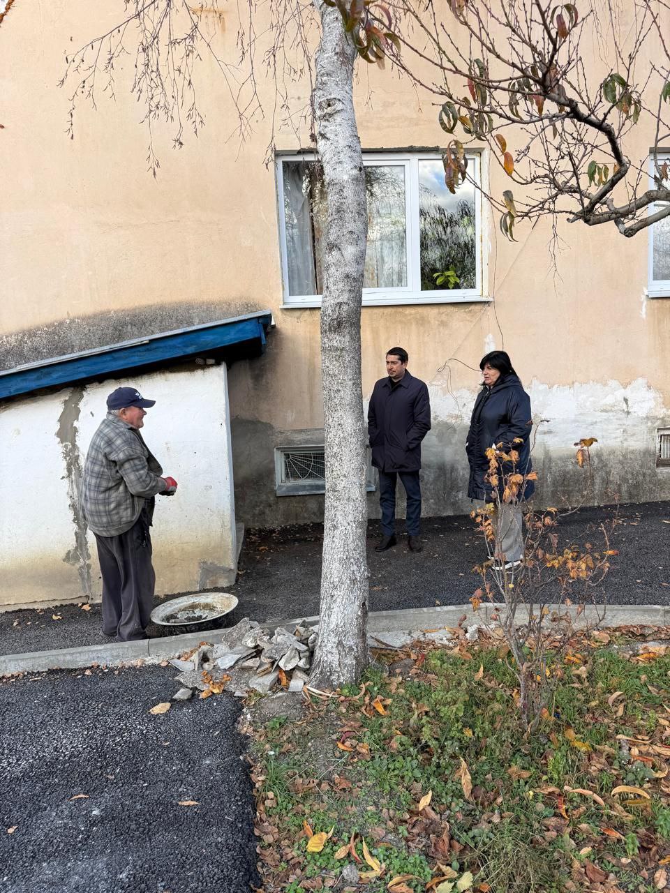 Также на стадии завершения находятся работы по благоустройству дворовых территорий. Проведены работы по асфальтированию, осталось установить скамейки и урны. Мы проверили три двора: в селе Верхоречье по ул.Подгорная 24 и 24-а, а также в селе Предущельное по ул.Гагарина 58. Кроме того, оценили санитарное состояние поселения и работу дворников.