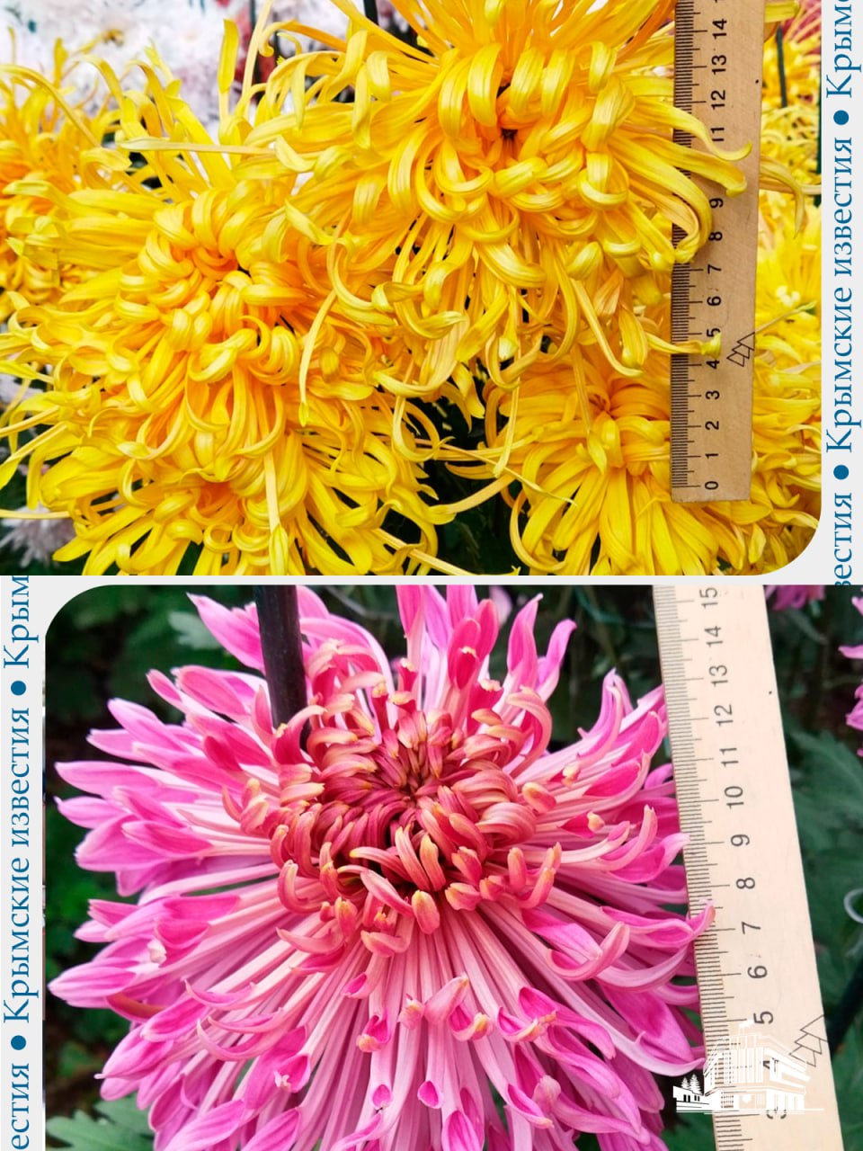 Гигантские хризантемы распустились в Никитском ботаническом саду.