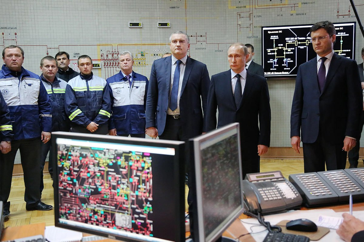 С того момента началась кропотливая, трудоемкая и требующая постоянного контроля работа по восстановлению энергоснабжения на всей территории полуострова. Напомним, что в период украинского управления энергосистема Крыма была дефицитной: собственная генерация составляла не более 25%. В целях экстренного реагирования сотрудники ГУП РК «Крымэнерго» совместно с МЧС организовали круглосуточное функционирование аварийных служб. Спустя два дня после повреждения ЛЭП были привезены первые 300 мобильных генераторов, через два дня поступило еще столько же. Городские дороги освещались световыми башнями, доставленными спецбортом МЧС с материковой части России. Пожалуй, самыми сложными были первые 10 дней блэкаута, в течение которых ударными темпами через Керченский пролив прокладывалась первая нитка кабельно-воздушной линии «Тамань — Камыш-Бурун» мощностью 200 мегаватт из Краснодарского края. А 2 декабря 2015 года Президент Российской Федерации Владимир Путин прибыл в республику для ее торжественного запуска. Открытие первой нитки энергомоста позволило стабилизировать работу собственных источников генерации республики. Это стало основой для увеличения мощности, вырабатываемой как на крымских ТЭЦ, так и на мобильных газотурбинных станциях, работающих в режиме принудительно пониженной мощности.
