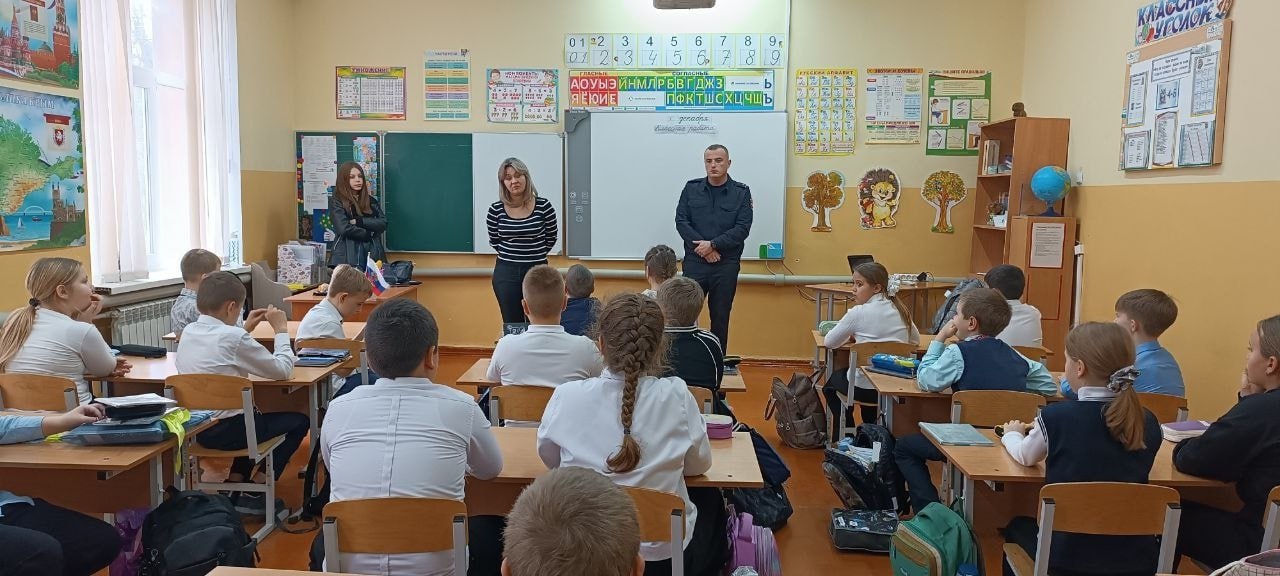 В МБОУ «Гвардейская школа-гимназия №2» внеклассный урок по профилактике правонарушений для школьников провела начальник отдела по делам несовершеннолетних управления по делам несовершеннолетних администрации Симферопольского района Людмила Анатольевна Анисимова и сотрудник ОПДН, старший лейтенант полиции Дмитрий Сергеевич Федорченко.