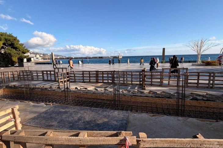 В завершающей стадии находится устройство траншей под электроснабжение и видеонаблюдение, монтаж кабелей в траншеи, монтаж гранитной плитки центральной аллеи и бортового камня, земляные работы сетей электроснабжения в зоне въезда с Чехова, монтаж гранитной плитки на проезде к дому композиторов.