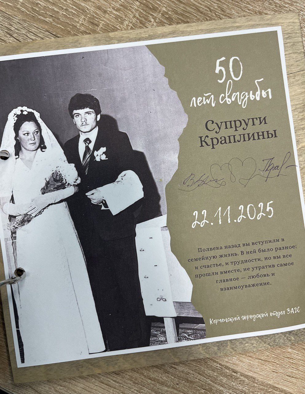 Подписи в Книге Памятных Дат Керченского городского отдела ЗАГС стали еще одним свидетельством прочности их брачного союза, продолжая прекрасную историю любви.