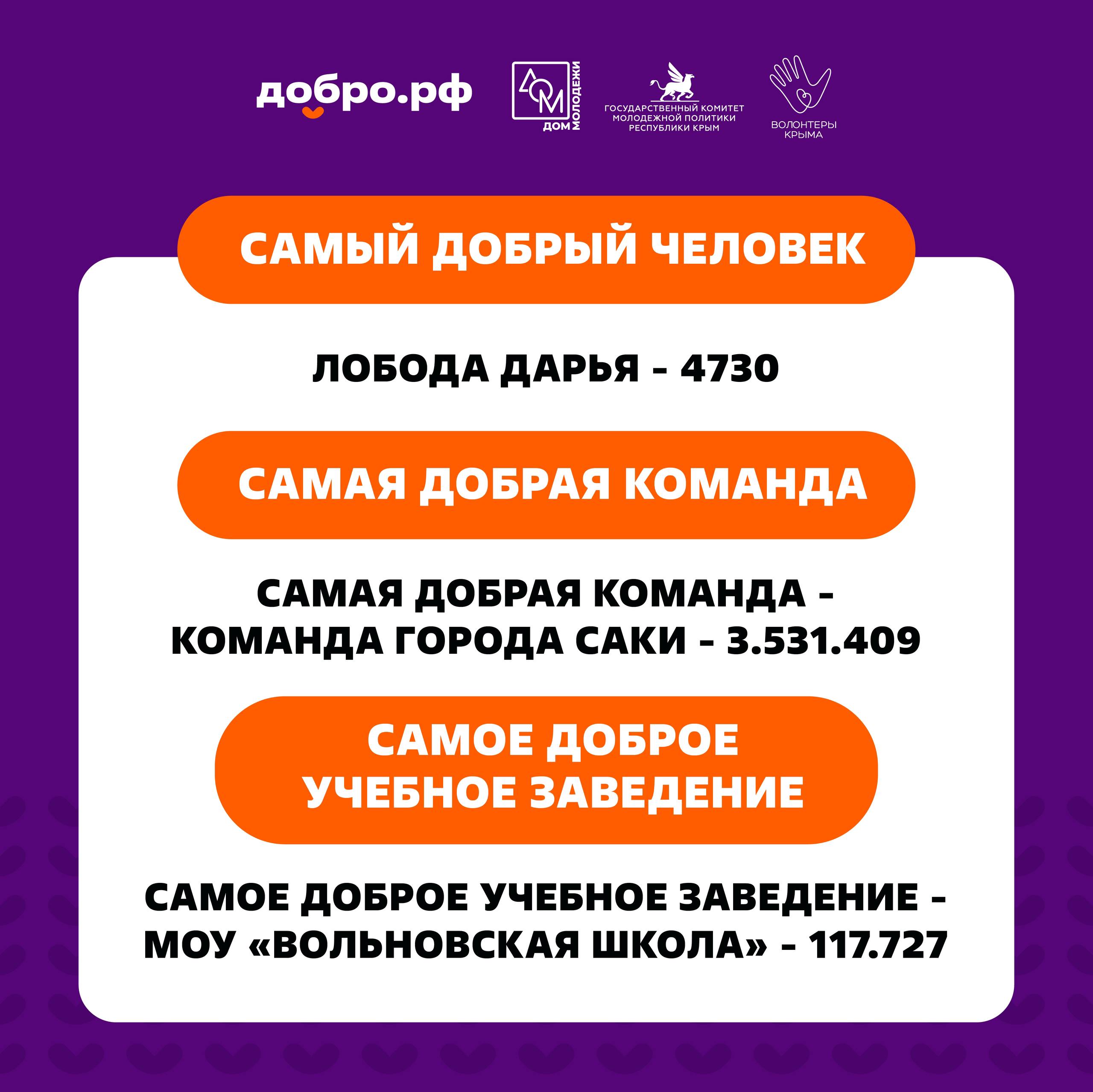 Мы гордимся тем, что наш город Саки занял ПЕРВОЕ место в номинациях "Самый добрый муниципалитет" и "Самая добрая команда Республики Крым"