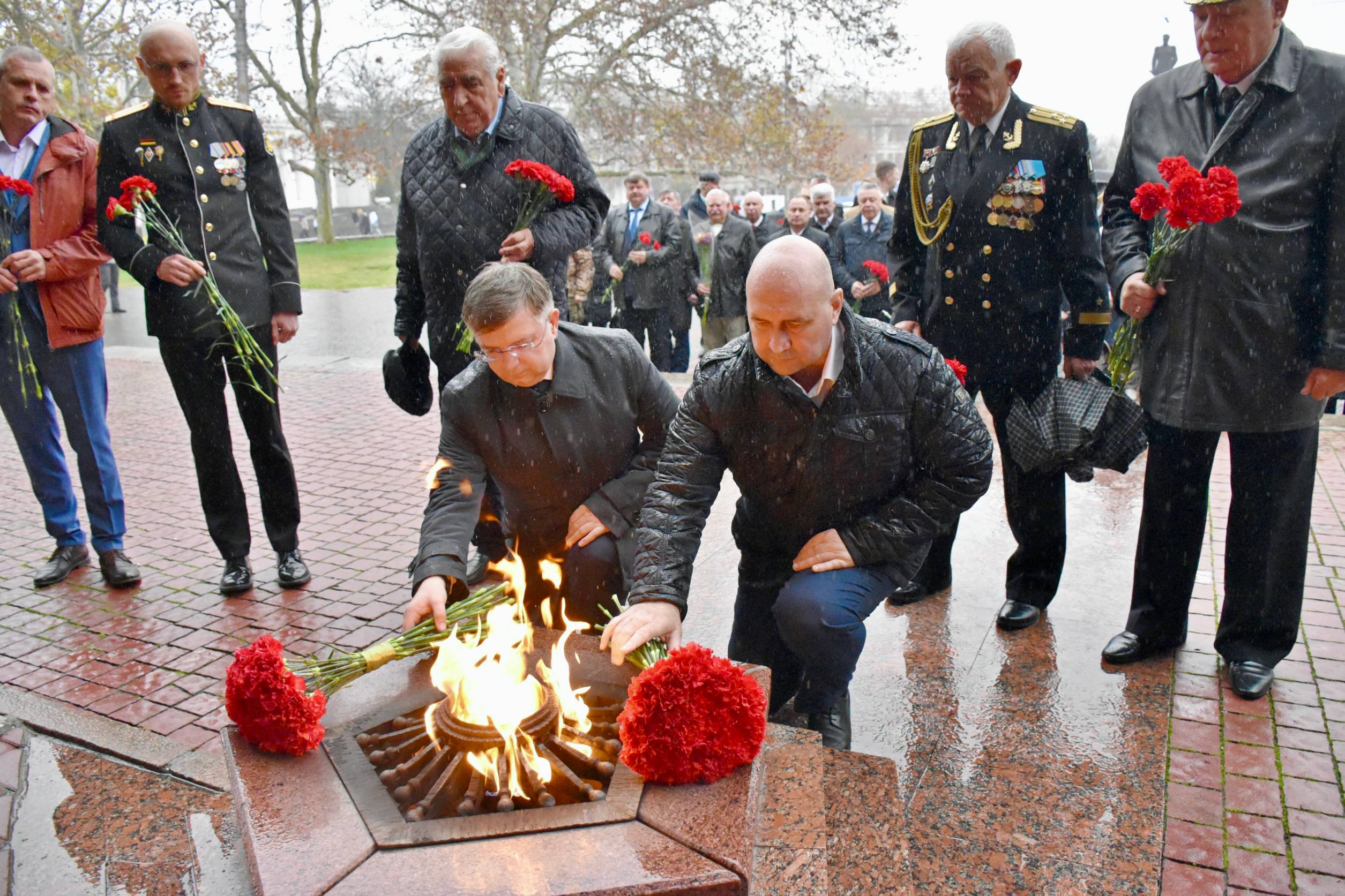 Этот день начали с возложения цветов к Вечному огню Мемориала героическим защитникам Севастополя 1941–1942 годов вместе с депутатами Законодательного Собрания и членами Правительства, представителями силовых ведомств, участниками СВО и ветеранами боевых действий, общественниками.