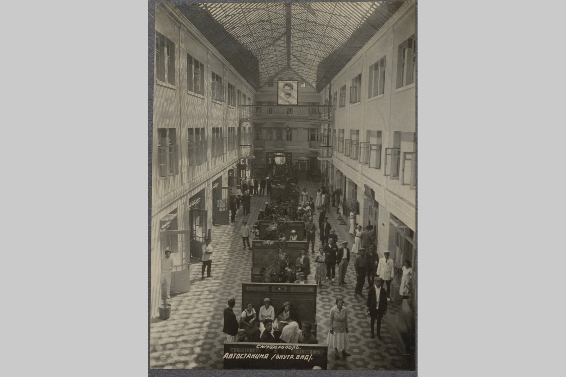 Вниманию представлены фрагменты фотоальбома Крымской дирекции автобусных сообщений - «Союзтранс», который датирован 1935 годом. Предприятие было основано в 1930 году на базе автотранспортного акционерного общества курортного и междугороднего сообщения «Крымкурсо». «Союзтранс» был разделен на территориальные автоколонны, обладал обширным автопарком, на автобазах имелись ремонтные мастерские, автозаправочные станции. Учреждение осуществляло междугородние и внутригородские автобусные перевозки. Помимо городских автостанций курсирование транспорта могло осуществляться через санатории, дома отдыха и пансионаты. Расписание движения находилось в ведении диспетчерской службы. Билеты приобретались в кассе согласно установленным тарифам. Для обслуживания пассажиров имелись: залы ожидания, пункты торговли и общепита, камеры хранения, штат кондукторов и носильщиков.