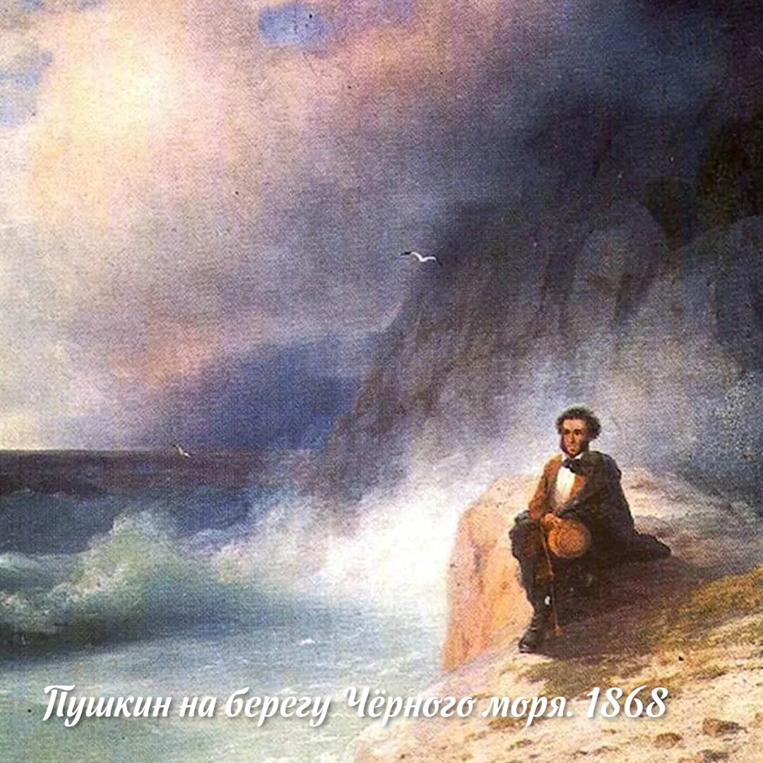 Ещё один гений — Иван Айвазовский — успешно занимался этим за 150 лет до того, как придумали все эти ваши жипити. Художник создал целую серию картин, изображающих Пушкина в Крыму. Писал не с натуры, кое-где — коллабился с другими легендами. Вот вам зашкаливающая концентрация грандиозности: Чёрное море, Пушкин и Айвазовский.