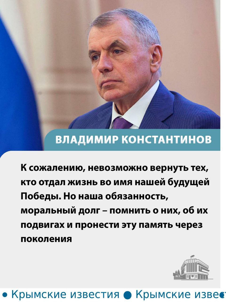 Гибель каждого бойца – невосполнимая утрата, а сохранение памяти о подвиге Защитников остаётся моральным долгом и важной частью работы с молодёжью, подчеркнул глава крымского парламента.