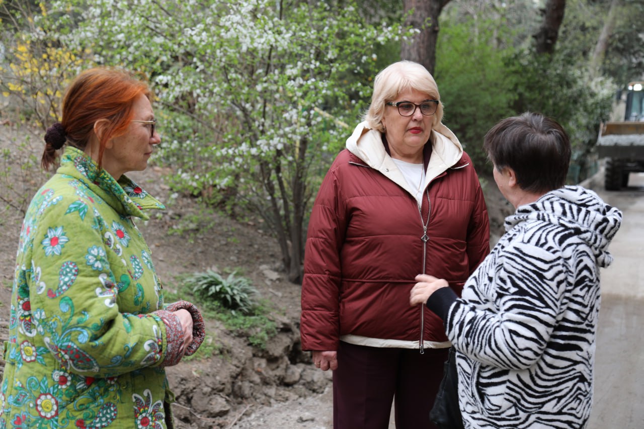 В рамках рабочего выезда на улицу Ялтинскую проверила ход работ по благоустройству придомовой территории в районе домов №№ 1, 3, 5.