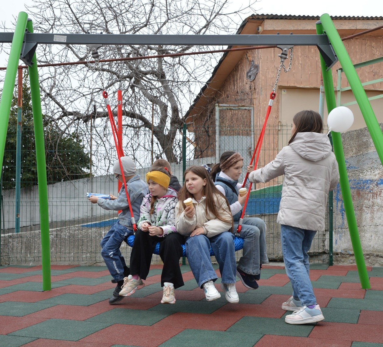 Перерезать красную ленточку доверили главным героям церемонии — детям. Для них устроили настоящий праздник с аниматорами, конкурсами и мороженым.