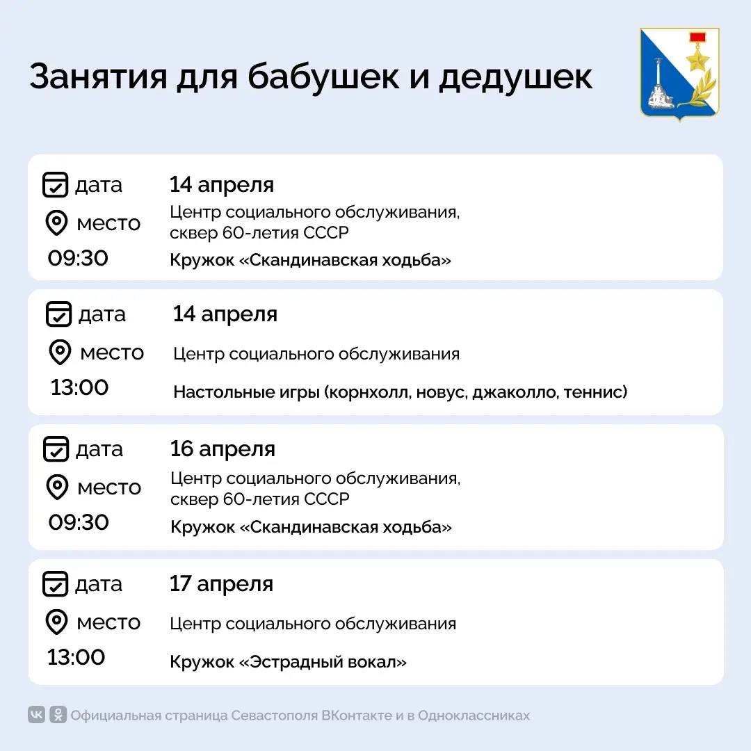 Бабушек и дедушек Севастополя ждут на активных и интересных занятиях