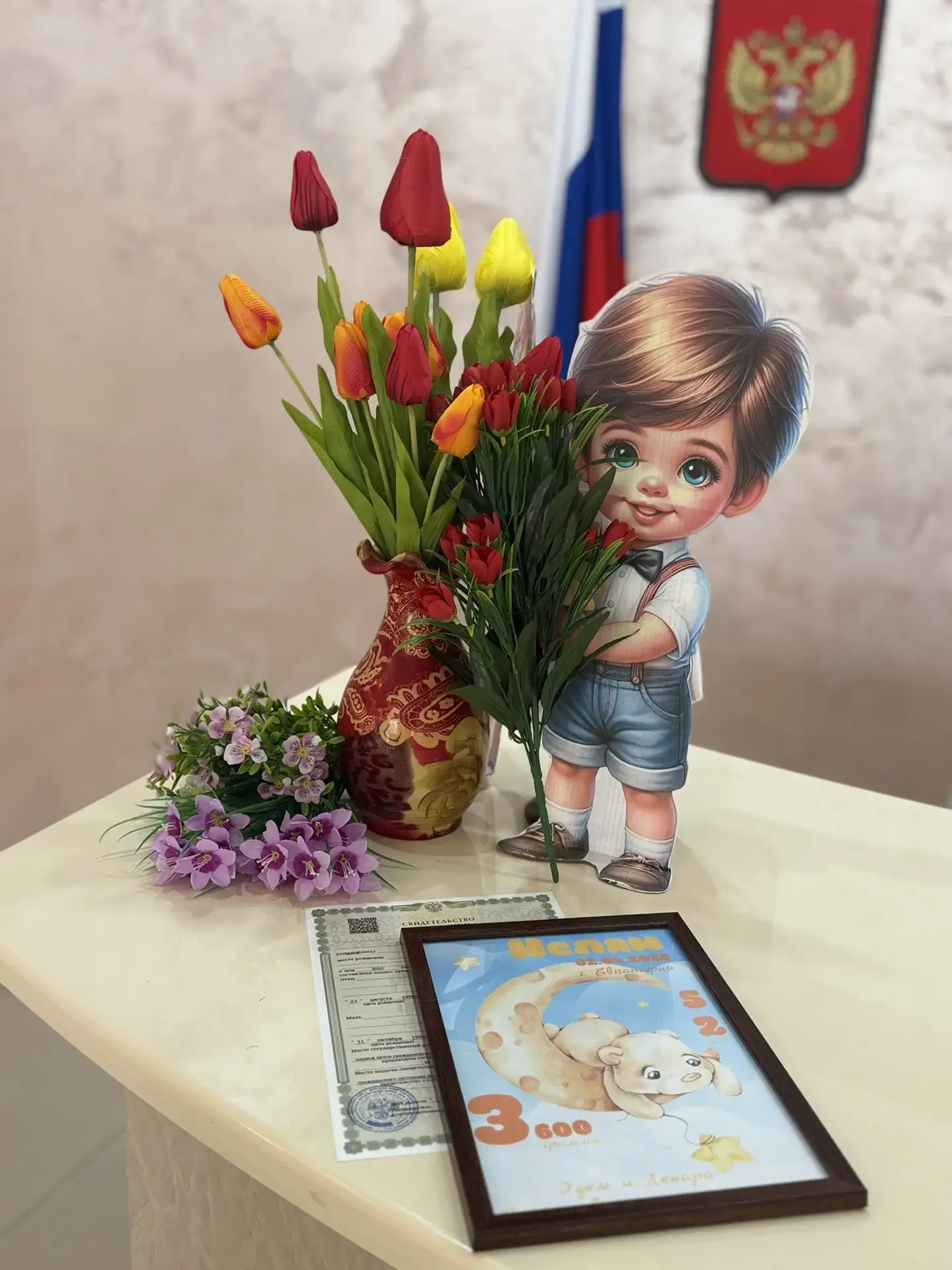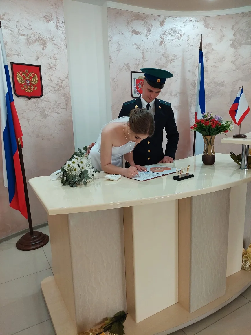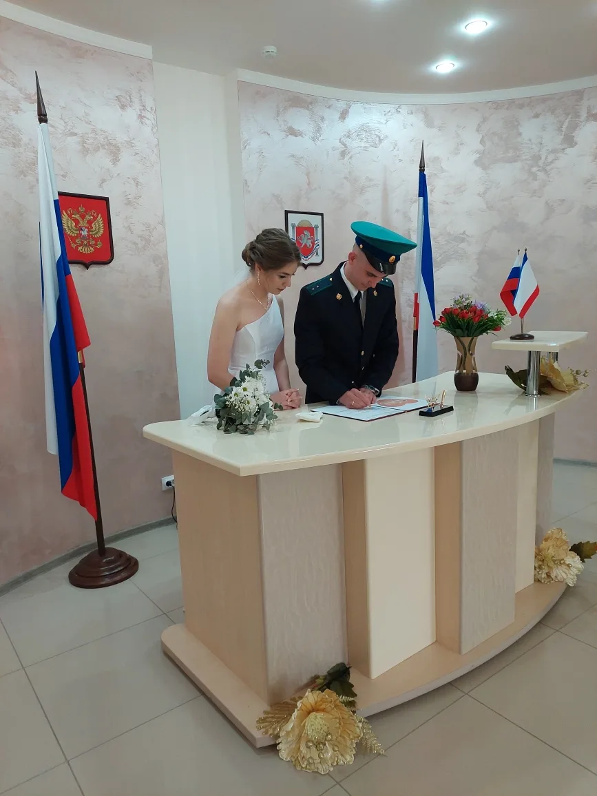 Сотрудники отдела ЗАГС сердечно поздравили молодожёнов и молодых родителей, пожелав семьям счастья, любви, благополучия и, конечно же, чистого и мирного неба.