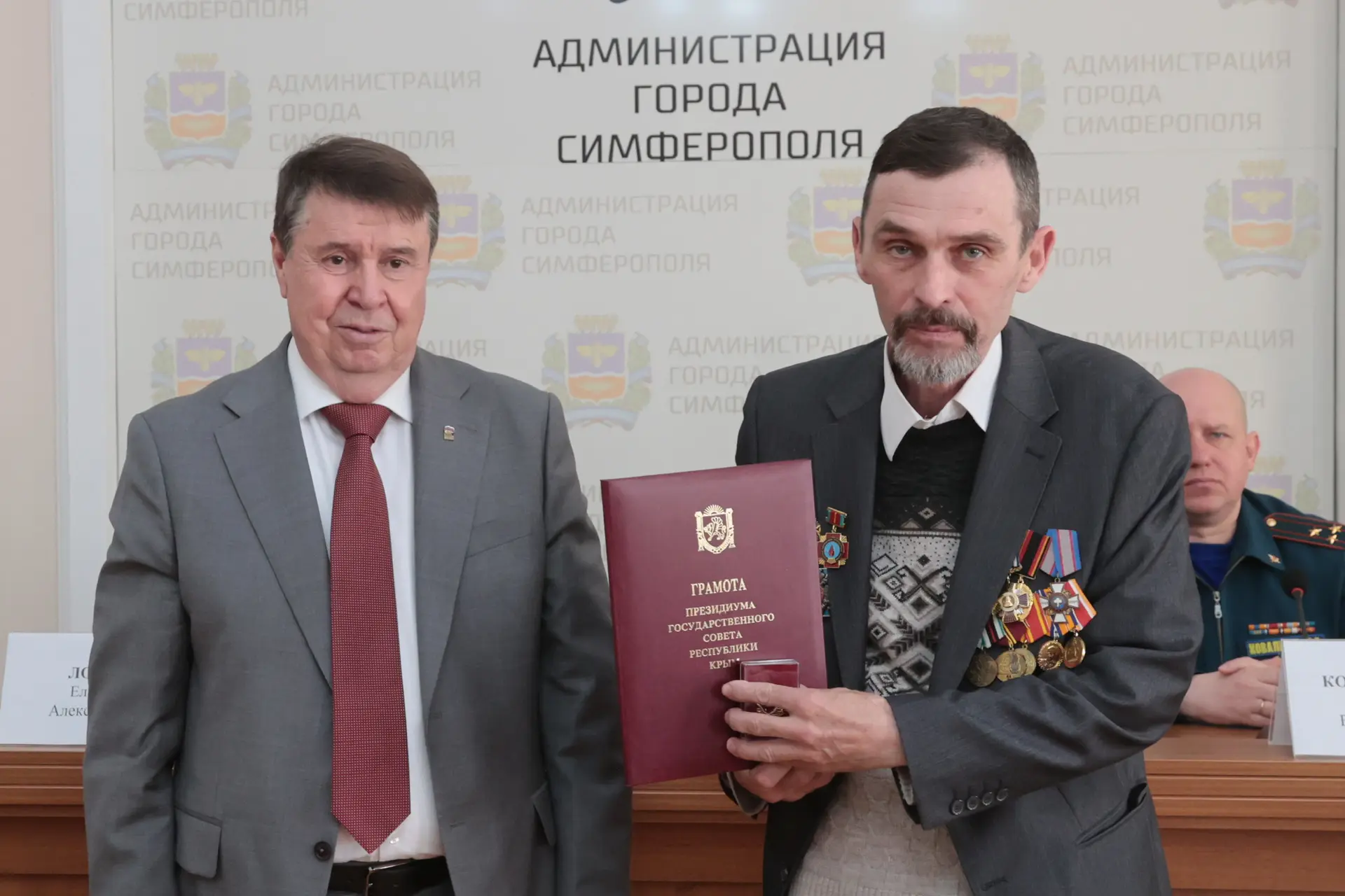 Поблагодарив ветеранов пожарной охраны и МЧС России за верное служение Отечеству, Сергей Цеков вручил грамоты Президиума ГС РК и благодарности главы крымского парламента.