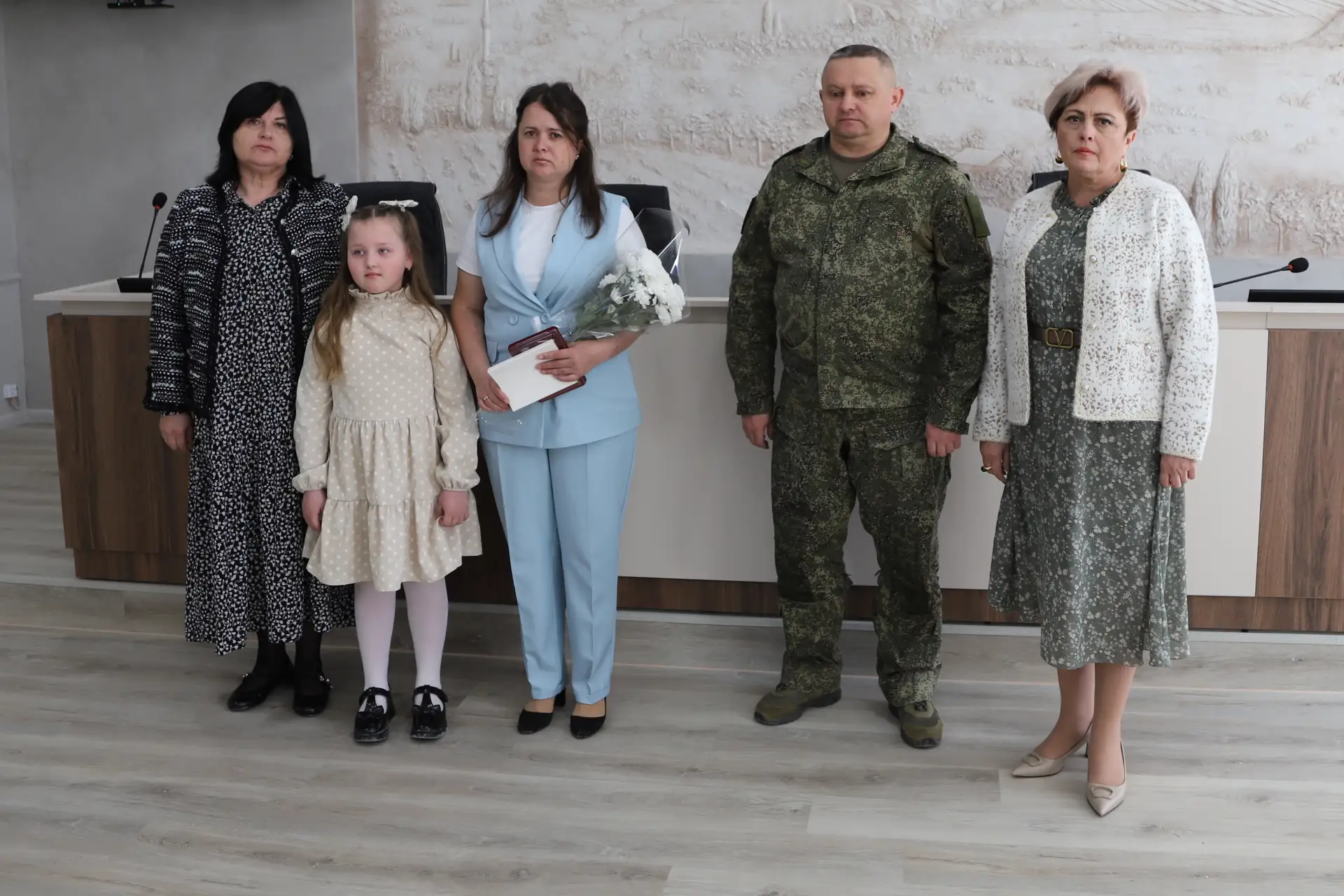 На аппаратном совещании военный комиссар Бахчисарайского района Игорь Антонов торжественно вручил супруге погибшего военнослужащего государственную награду — орден Мужества, присвоенный посмертно Указом Президента Российской Федерации.
