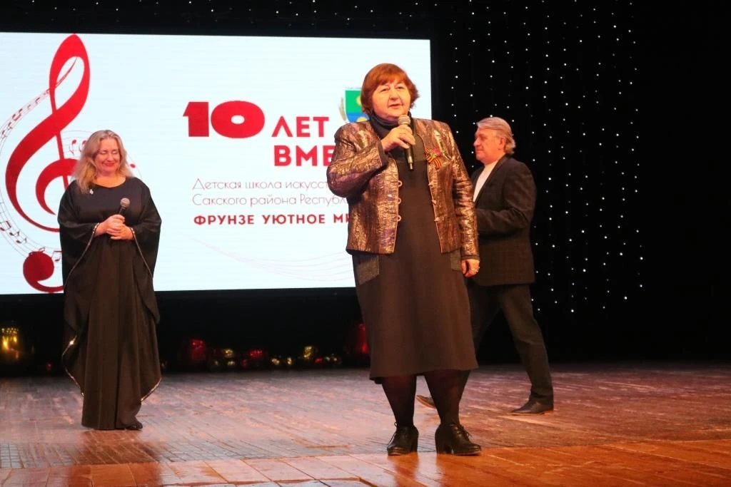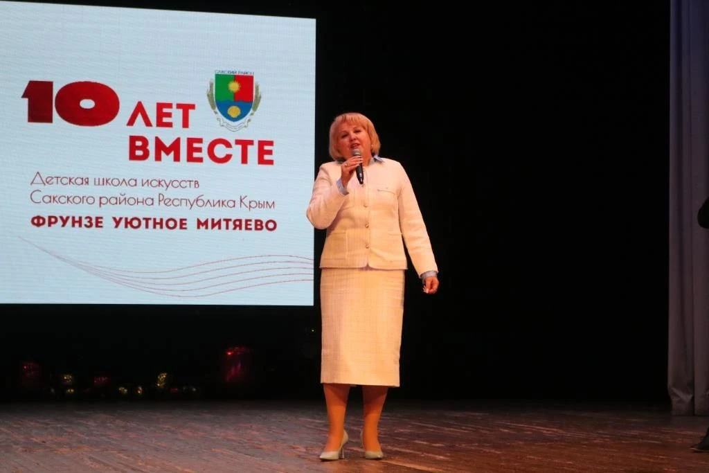 Руководители района заместитель главы администрации Сакского района Светлана Дорошенко и заместитель председателя Сакского районного совета Надежда Блохина тепло поздравили директора школы, заслуженного работника культуры Республики Крым Нину Леонтьеву и воспитанников с этим знаменательным событием, отметив вклад коллектива в развитие творческого потенциала детей.