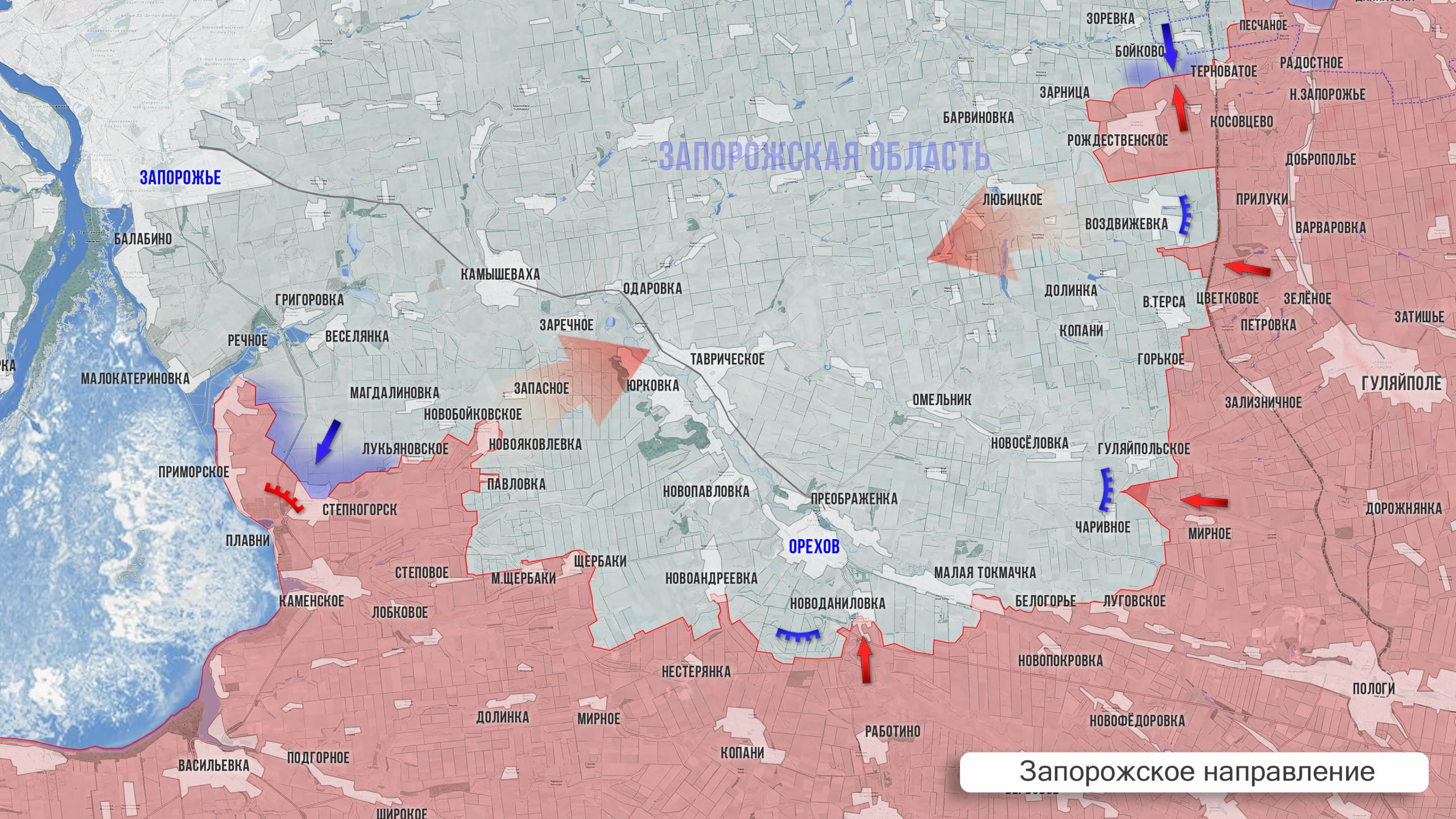 На западном фланге Запорожского участка ситуация прежняя: позиционные бои в районе Приморского и Степногорска и наши удары по логистике врага в Малокатериновке, Кушугуме, Григоровке. На восточном фланге в целом тоже без перемен: ВС РФ стараются занять новые позиции под Гуляйпольским и между Верхней Терсой и Воздвижевкой. Продолжаются регулярные удары по огневым точкам, скоплениям личного состава и техники врага в районе Долинки, Копаней, Червоного Яра и Любицкого.