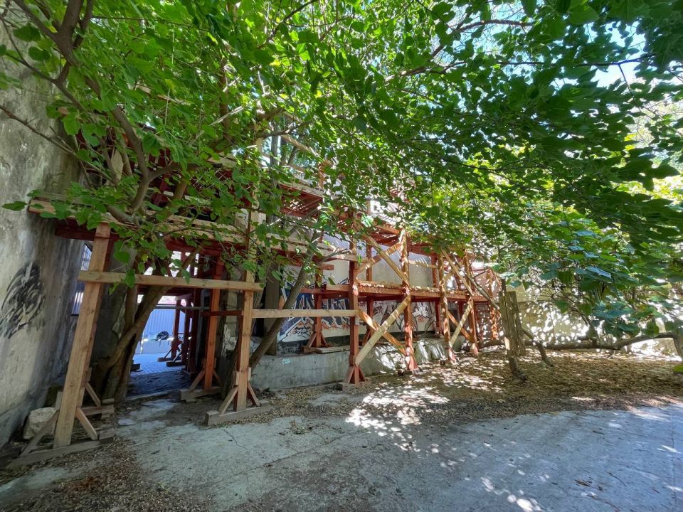 зафиксировали аварийные конструкции кинотеатра и летней сцены, в том числе, со стороны территории детского сада