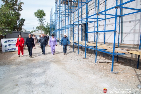 В городе Старый Крым глава парламента осмотрел ход строительства нового дома культуры. Проектом предусмотрено обустройство актового зала, библиотеки, помещений для занятий творчеством. Окончание работ запланировано на 2026 год.