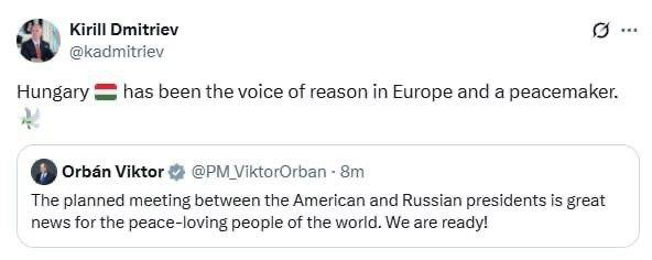 «Будапештский саммит мира. Вчера я провел телефонные переговоры с президентом Трампом, сегодня – с президентом Путиным. Подготовка началась. Венгрия готова!»,