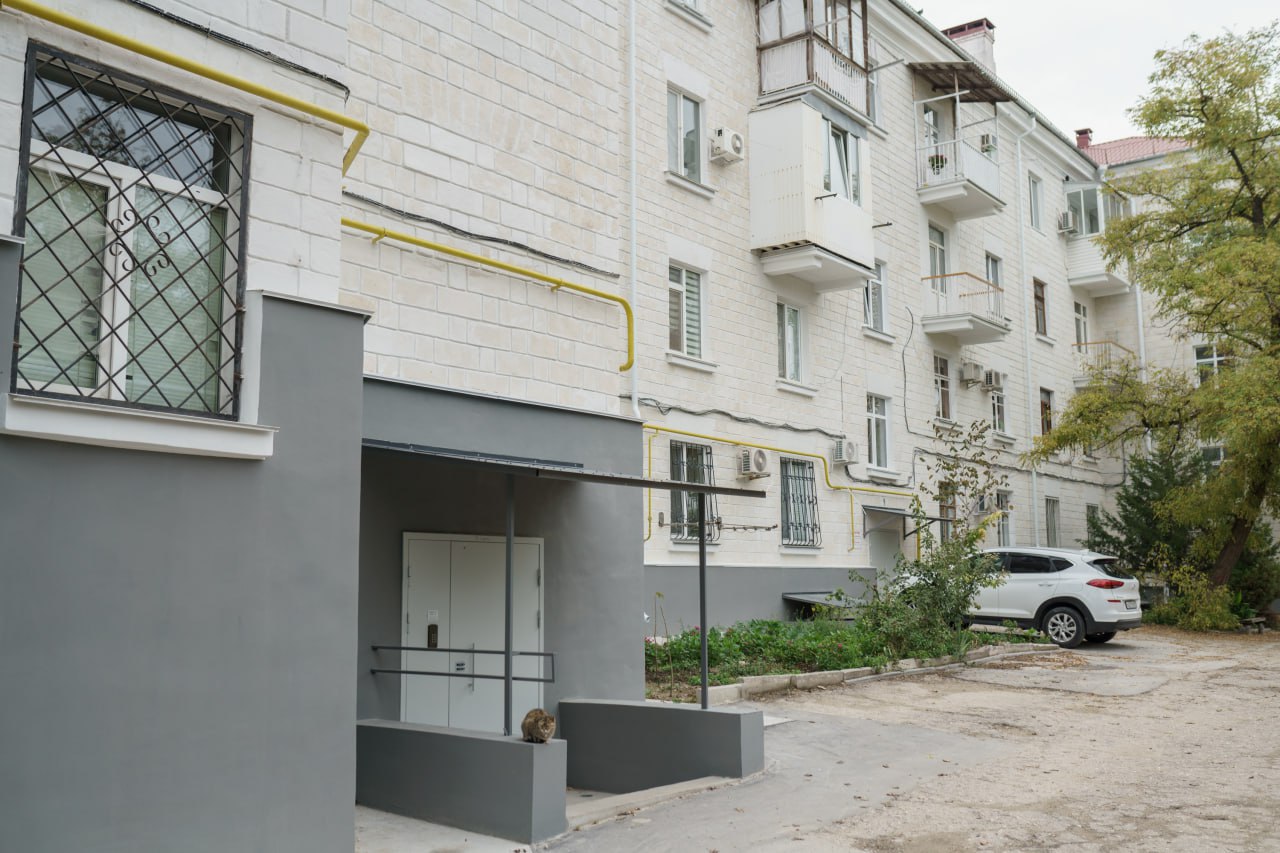 Минувшим летом завершили ремонт дома №26а — здесь строители работали вручную, потому что дом облицован плиткой из инкерманского камня, а значит, нужно было использовать те же технологии, как при ремонте домов — объектов культурного наследия.