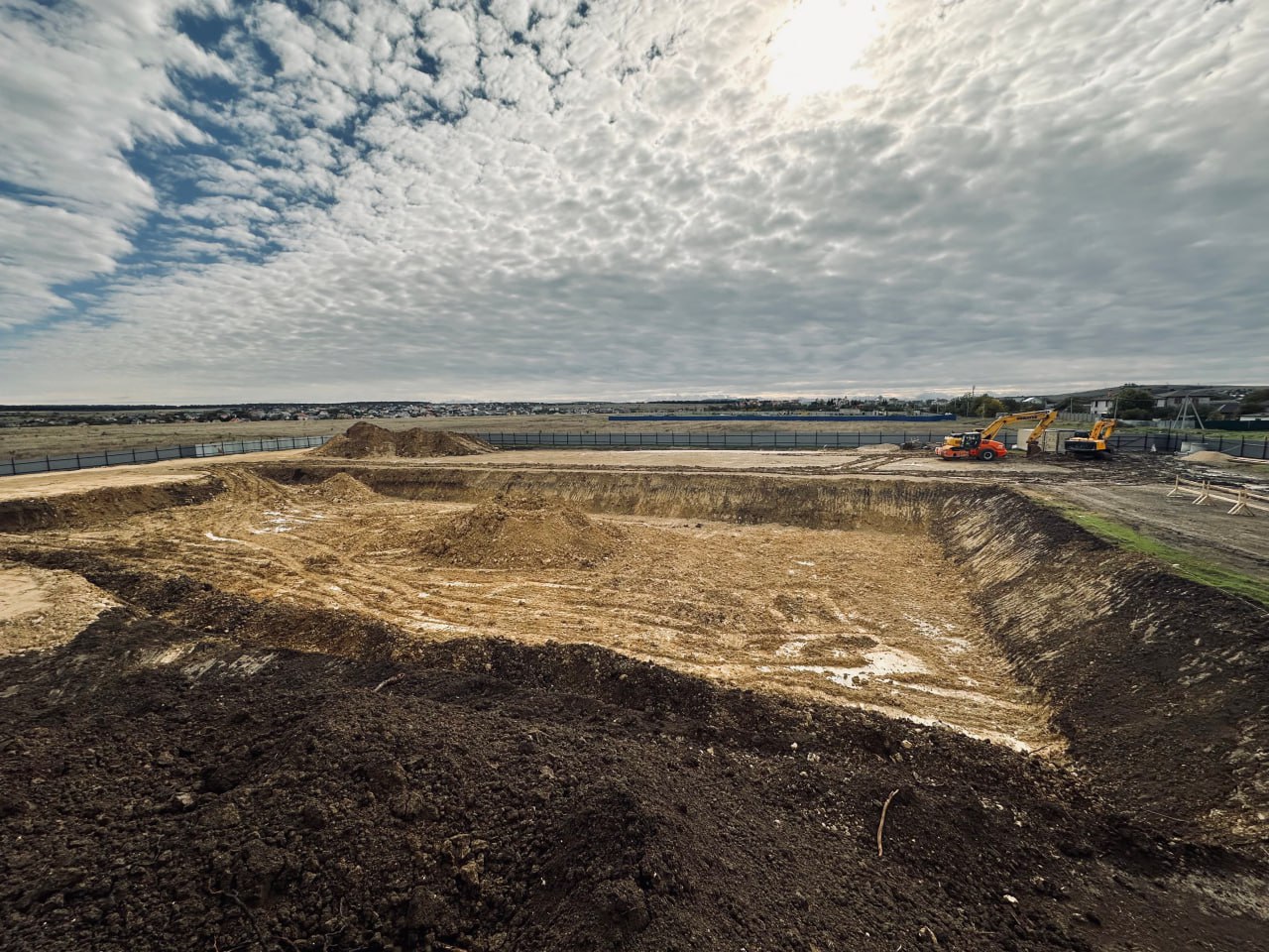 Сейчас на объекте ведутся подготовительные и земляные работы: строители и техника сосредоточены на разработке котлована, устройстве фундамента. Впереди — начало монолитных работ. Общая площадь застройки превысит 2000 квадратных метров. Мы рассчитываем закончить строительство садика в 2027 году.