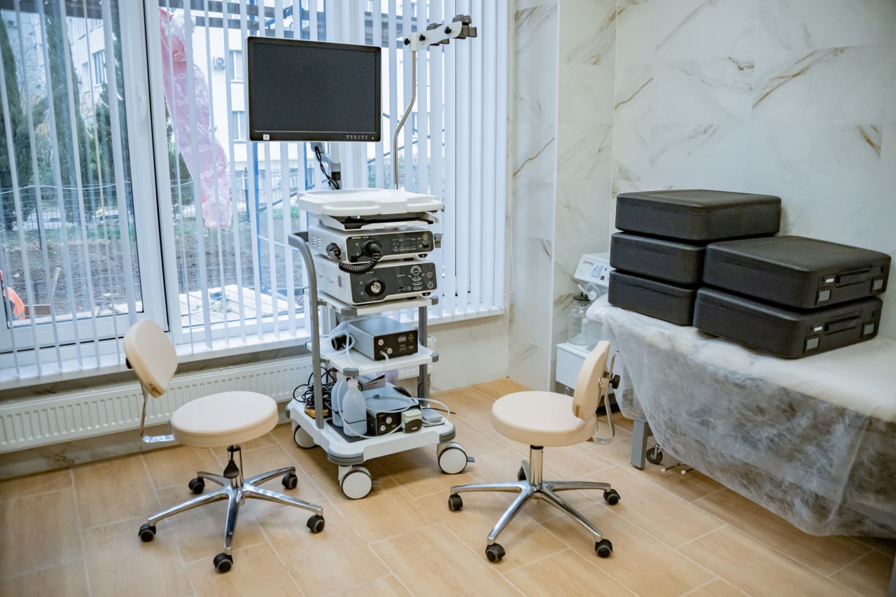 Рентгеновский кабинет, маммограф, флюорографический аппарат, два аппарата УЗИ, эндоскопическая стойка.