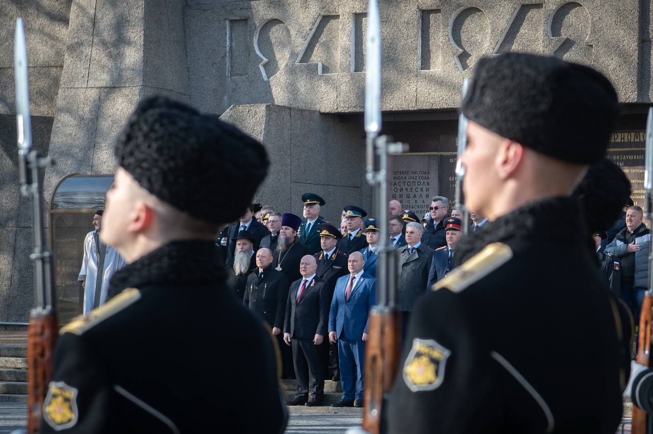 Утром вместе с членами Правительства Севастополя, депутатами Законодательного Собрания, представителями силовых и федеральных ведомств, участниками программы «Севастополь — город героев», представителями общественных организаций, духовенством возложили цветы к мемориалу героической обороны Севастополя 1941-1942 гг.