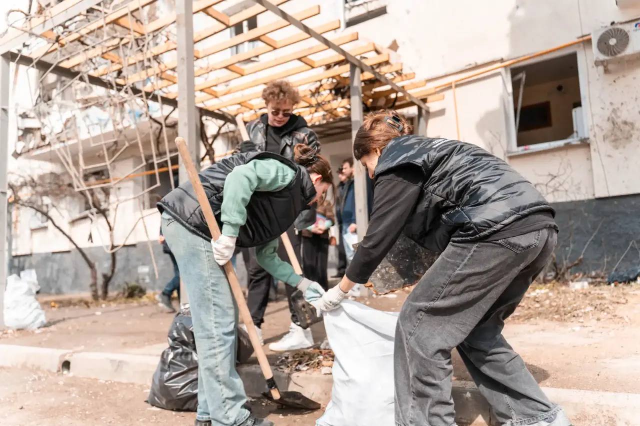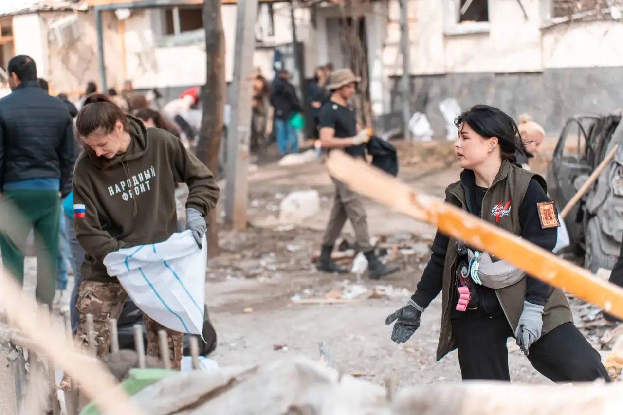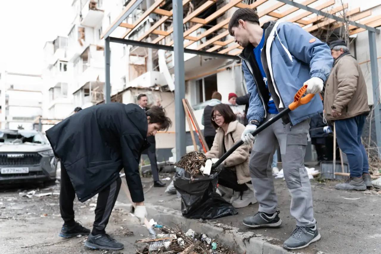 Наши волонтеры помогают убирать последствия взрыва в домах на улице Павла Корчагина