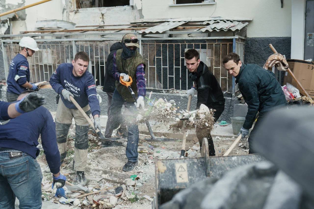 И, конечно, спасибо нашим добровольцам. Порядка ста волонтеров приехали на место, задач хватило всем. Те, кто имеет опыт работы с подобными разрушениями, помогали спасателям расчищать завалы. Парни-волонтеры помогали разбирать выбитые оконные рамы. Их место сразу затягивали пленкой.