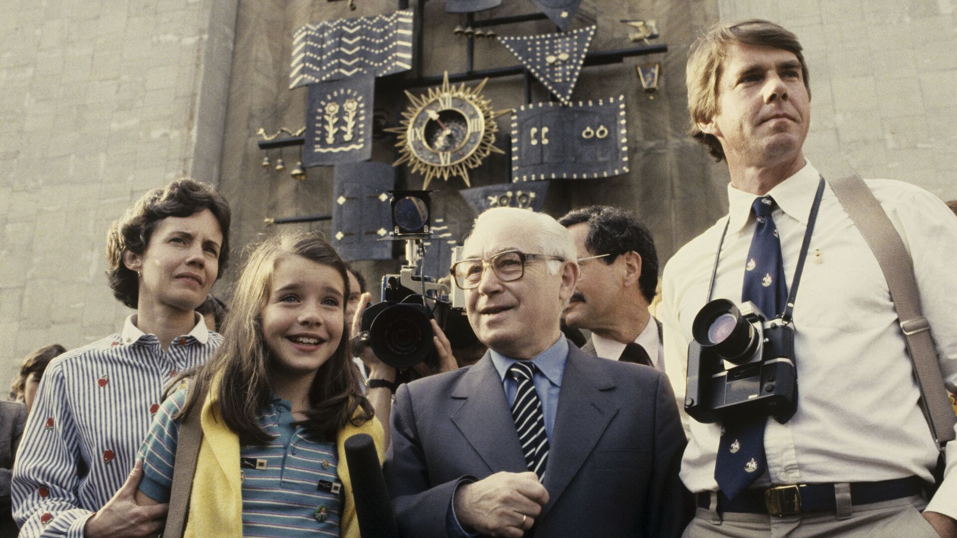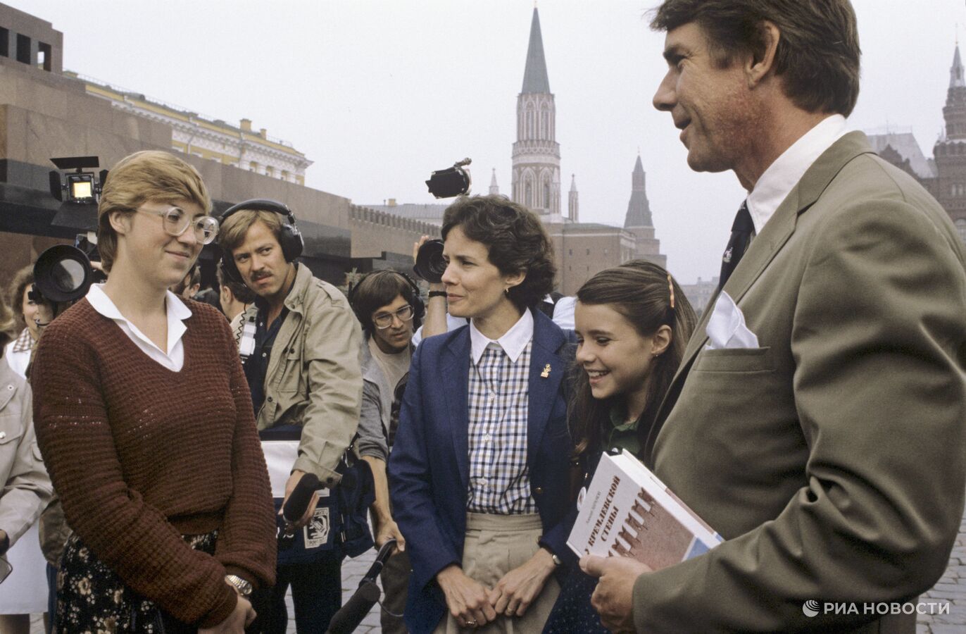 Американская школьница Саманта Смит, посетившая СССР по приглашению Генерального секретаря ЦК КПСС Юрия Владимировича Андропова, с родителями на Красной площади