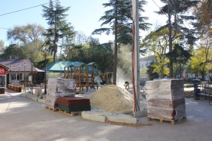 Глава администрации города Владимир Ким осмотрел ход работ. "Работы идут по графику. Завершить установку комплекса планируется до середины ноября. Уважаемые феодосийцы, вижу ваши комментарии по поводу сооружения, которое появилось в сквере...