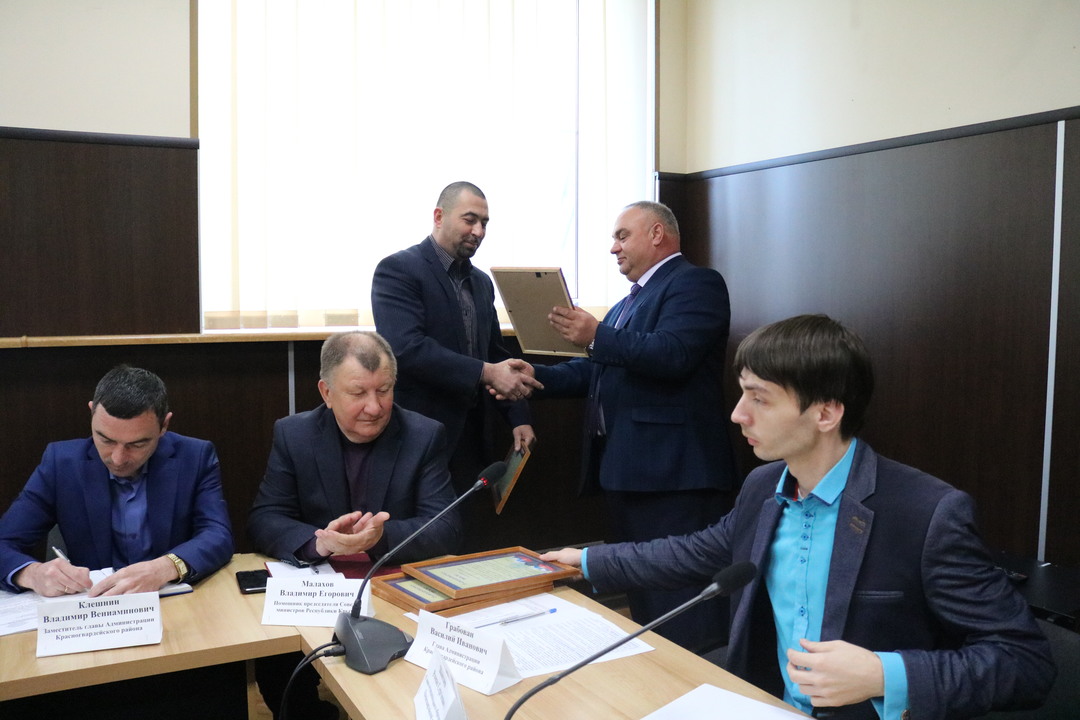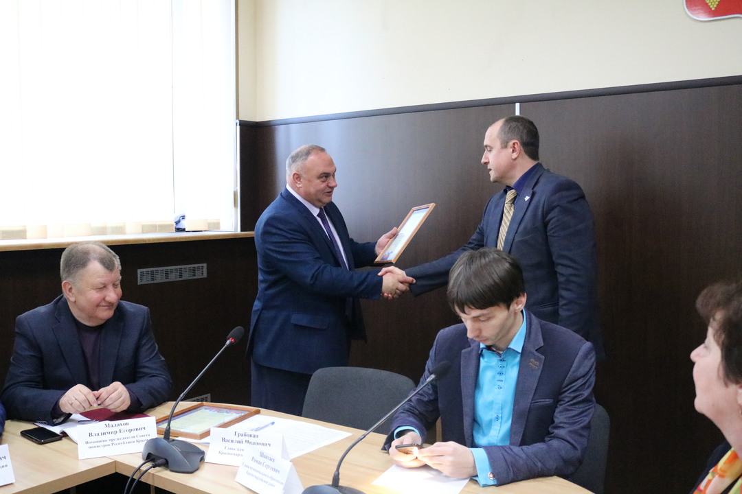 В рамках расширенного аппаратного совещания глава Администрации Красногвардейского района вручил благодарности в честь Дня работников жилищно-коммунального хозяйства за плодотворную работу коллективам МУП «Октябрьское ЖКУ», МУП «Октябрьская водная компания», Джанкойскому филиалу ГУП РК «Вода Крыма», МУП «Петровское ПУЖКХ», МУП «Красногвардейское ПУЖКХ» в лице их руководителей.
