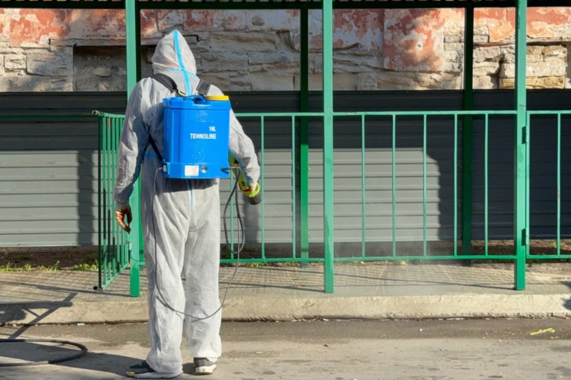 Работы ведет бригада из 6 человек. Вчера была выполнена обработка 7 контейнерных площадок, 23 баков на ул. Айвазовского и ул. Свердлова, сегодня работы ведутся в районе ШГС 2/1, 8/1, ул. Орджоникидзе, 118, 120, ул. Маяка, 17.