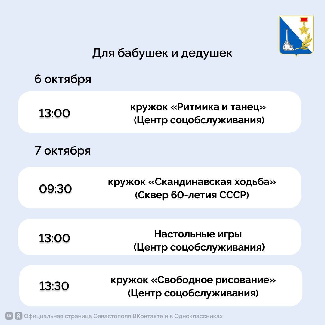 Специалисты Севастопольского центра социального обслуживания подготовили бесплатные мероприятия на следующую неделю.