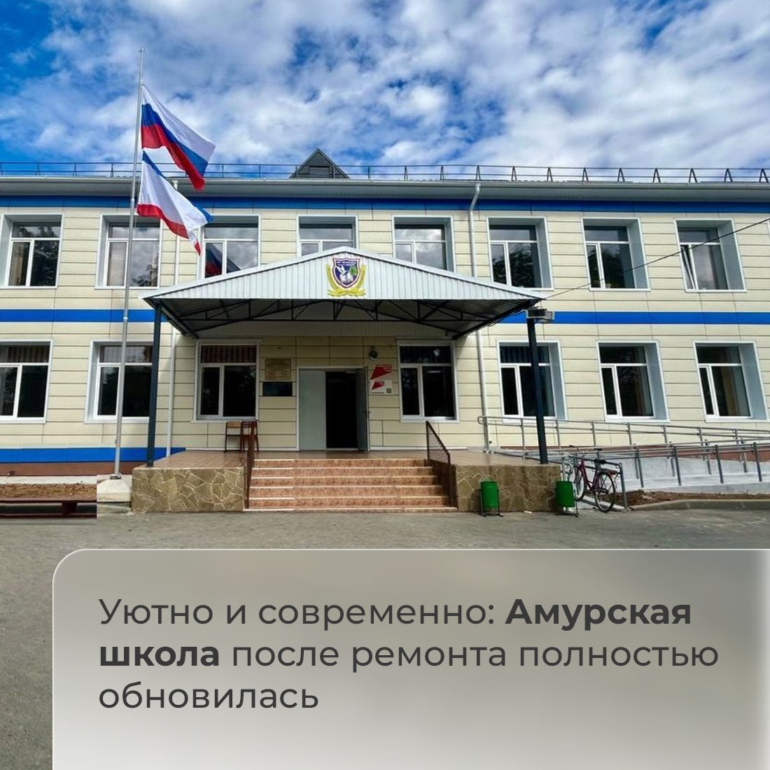 Частью программы стала и Амурская школа имени А. К. Чикаренко в Красногвардейском районе. Там завершили капремонт, и в обновлённых классах уже проходят занятия. В здании заменили все коммуникации, обновили кровлю и фасад.