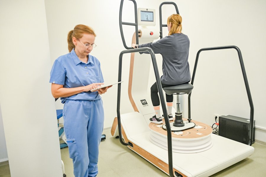 «Это инновационная платформа, которая используется в реабилитации и функциональном тренинге спортсменов. Она включает в себя биомеханический анализ движения, упражнения с сопротивлением, а также упражнения на стабилизацию и баланс», — рассказывает Ольга Битейкина, врач ЛФК.