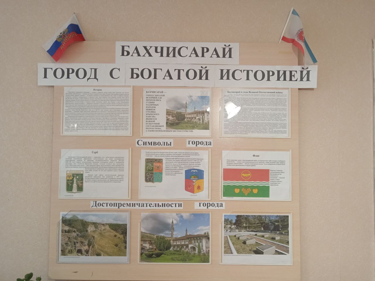 В стенах архивного отдела (муниципального архива) администрации Бахчисарайского района Республики Крым был организован выставочный стенд «Бахчисарай - город с богатой историей» с материалами об истории городских гербов – от старинных символов до современных материалов, а также сведения о достопримечательностях города, о том, что делает Бахчисарай уникальным и узнаваемым.