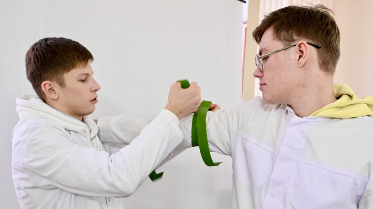 В Центре симуляционного обучения и аккредитации КФУ им. В.И. Вернадского будущие врачи выполняли практические задания: проводили сердечно-лёгочную реанимацию, делали внутривенные и внутримышечные инъекции, останавливали кровотечения, оказывали помощь при переломах и измеряли давление. Также участники прошли тестирование по сестринскому делу и основам работы в студотрядах.