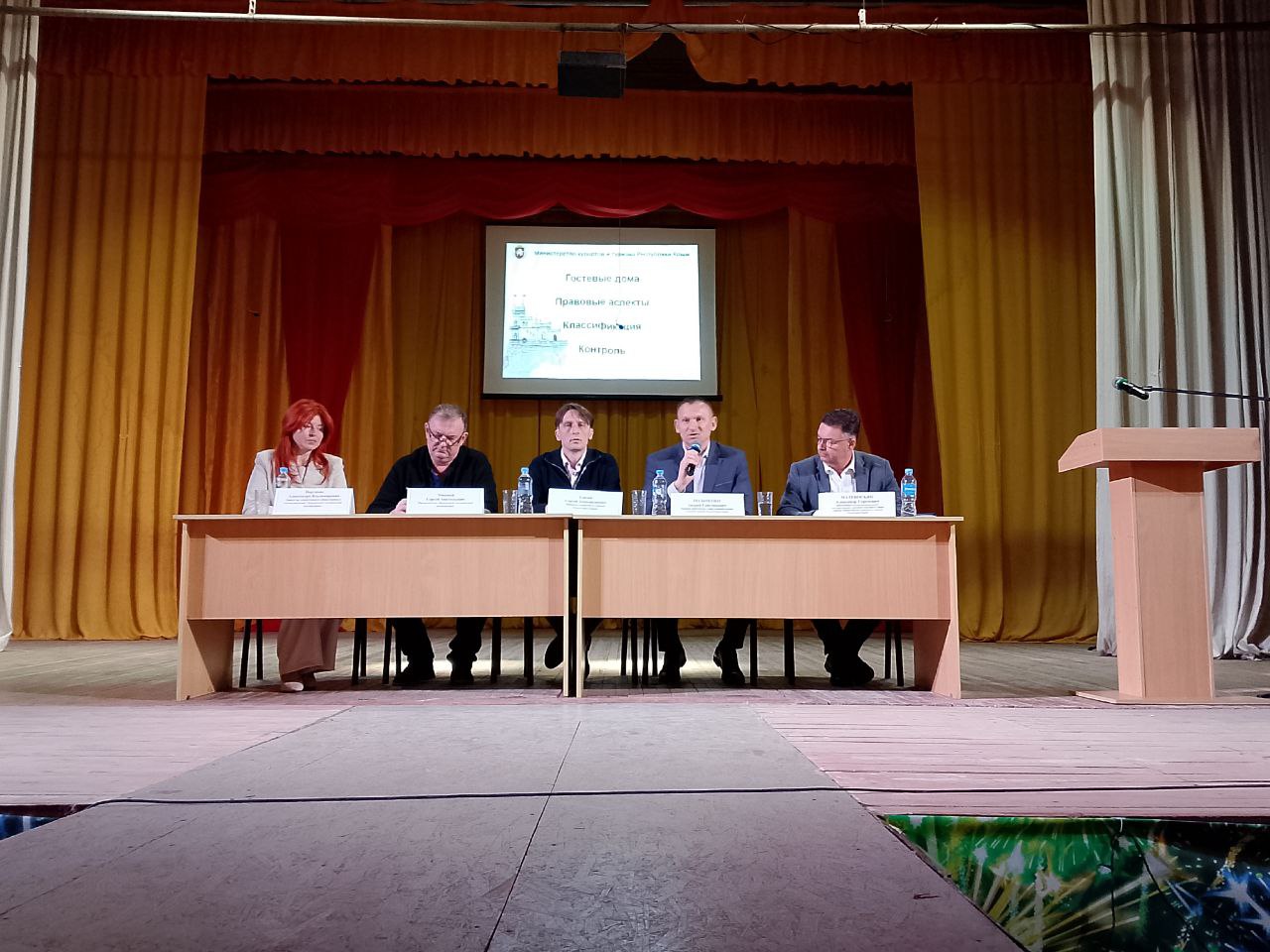 С основными докладами выступили Сергей Ганзий — министр курортов и туризма Республики Крым, Александр Матевосьян , заведующий отделом регионального государственного контроля (надзора) в сфере туризма министерства курортов и туризма Республики Крым, председатель «Крымской гостиничной ассоциации» Сергей Маковей и директор департамента общественных коммуникаций Крымской гостиничной ассоциации Александра Портнова.